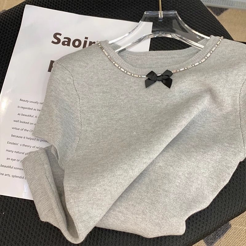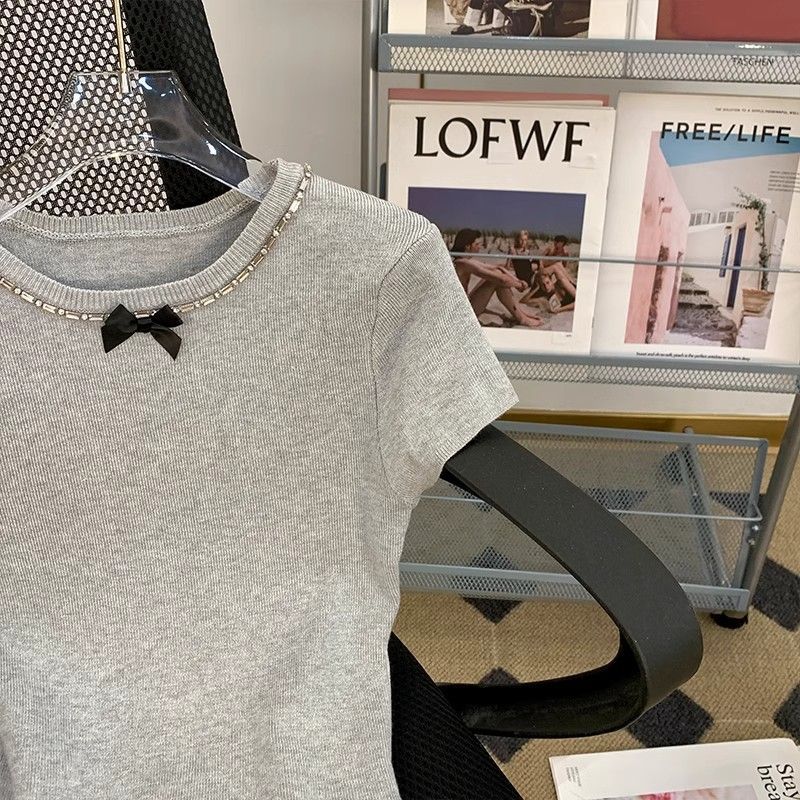 자매를 놓치지 마세요! 한국 스타일 활 라운드 넥 반팔 티셔츠 여성 샤넬 스타일 유행 올 매치 캐주얼 탑