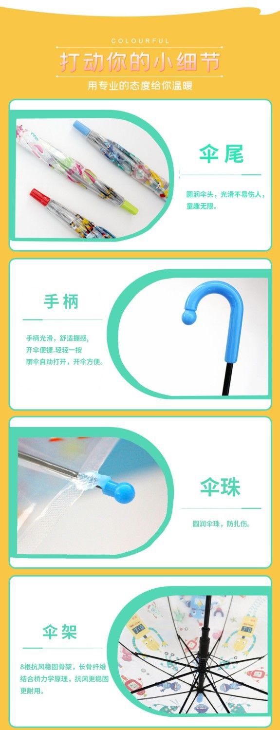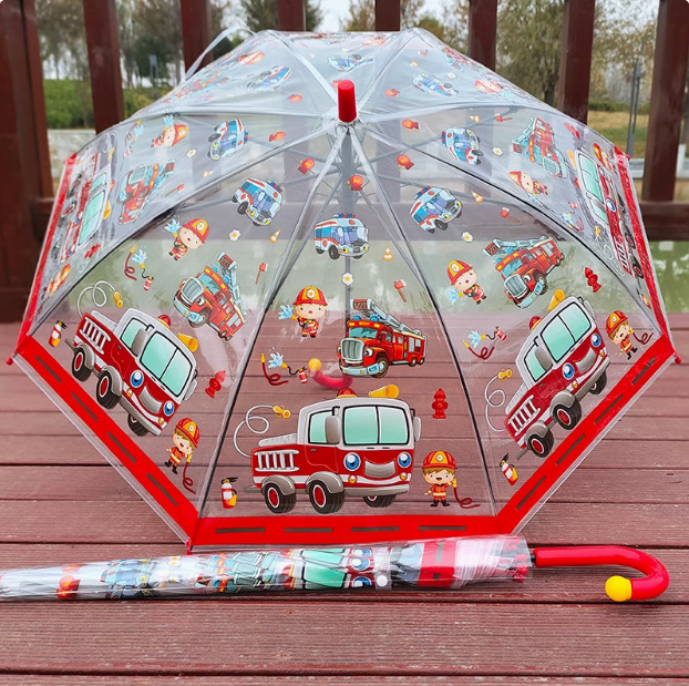 새로운 투명한 만화 어린이 우산 자동차 소방차 귀여운 공주 우산 소녀 소년 아기 우산 안전