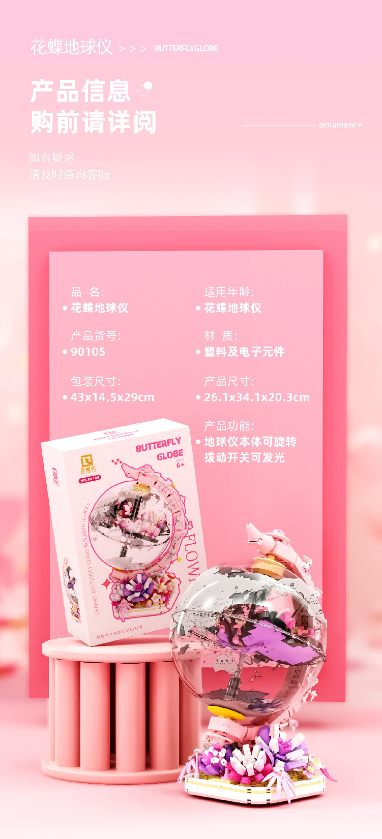 • 나비 지구본 [차갑고 따뜻한 2색 조명 + 광활한 세계 지도] (절묘한 색상 상자 포장)