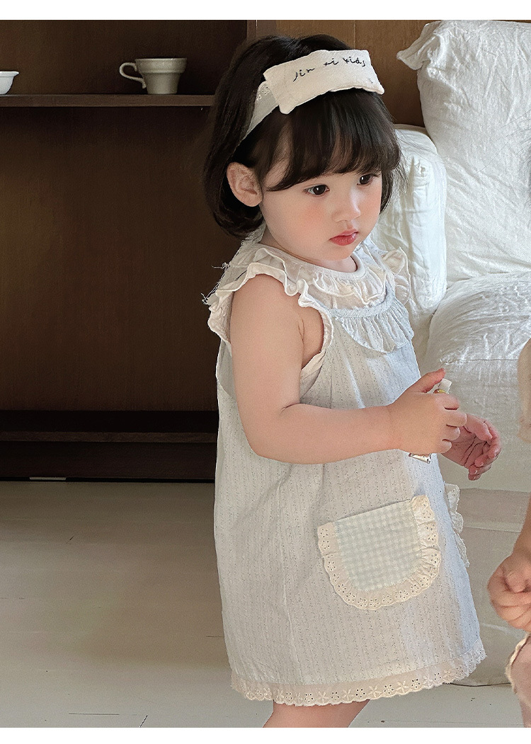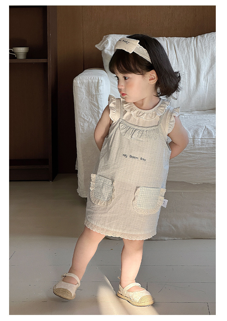 여자 여름 얇은 세트 2025 새로운 아기 아기 옷 민소매 티셔츠 스트랜드 스커트 투피스 세트 A