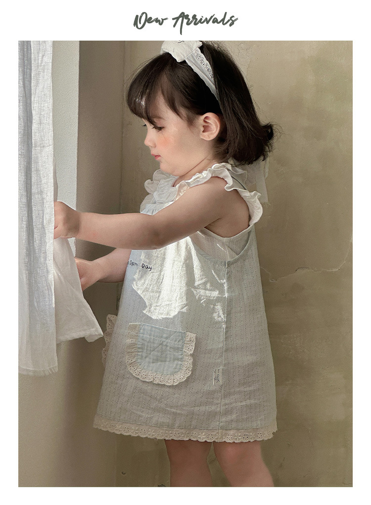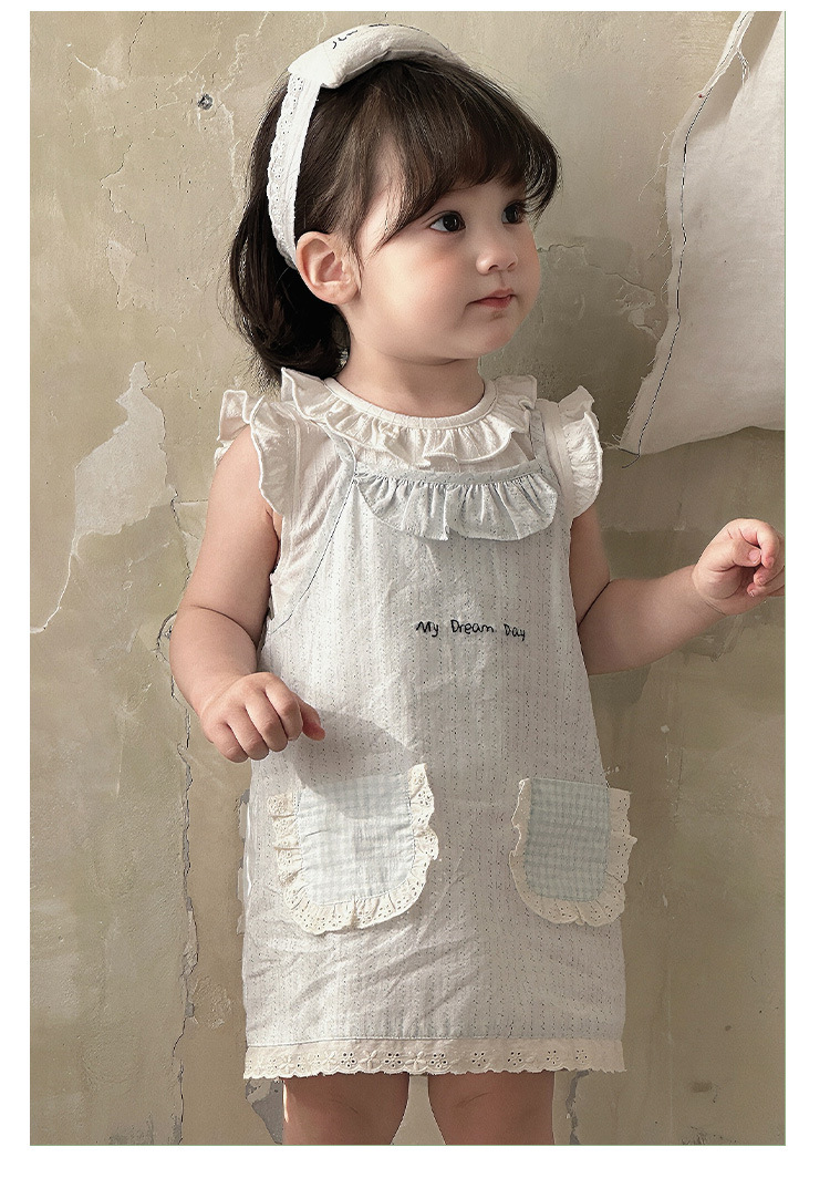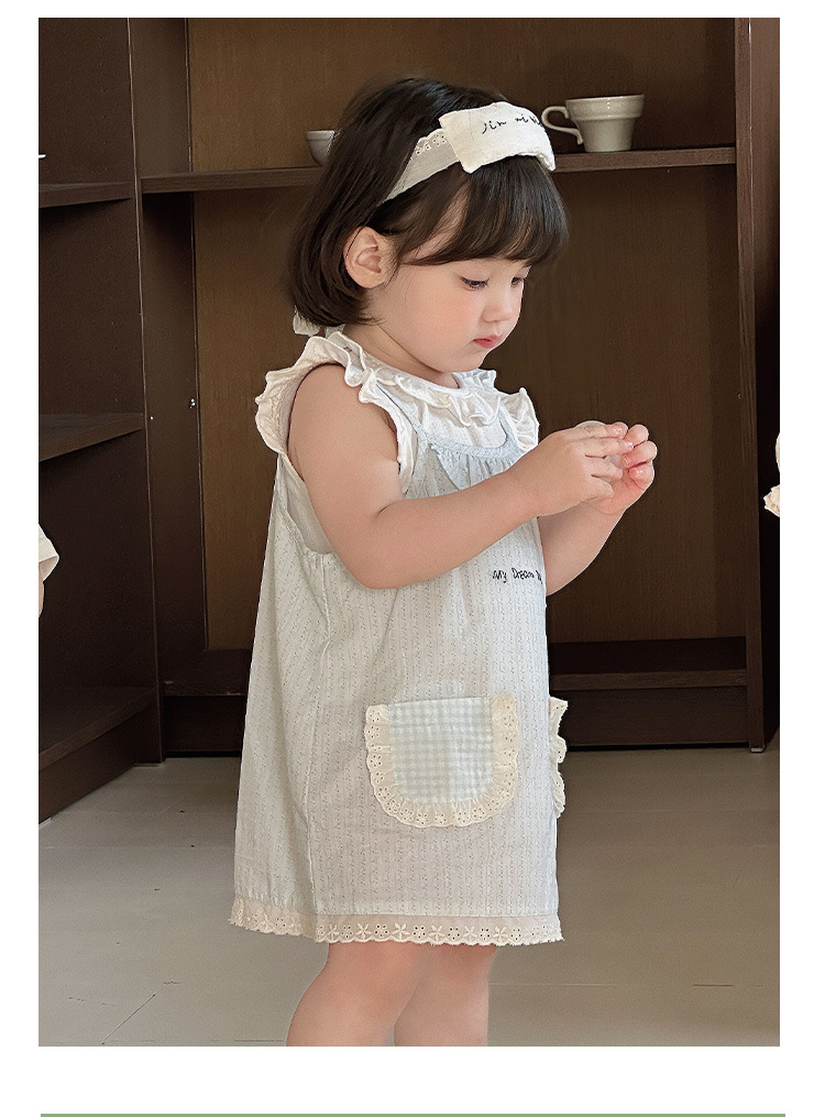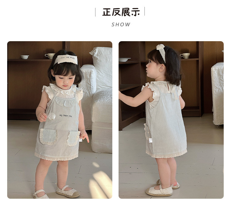 여자 여름 얇은 세트 2025 새로운 아기 아기 옷 민소매 티셔츠 스트랜드 스커트 투피스 세트 A스토어 가기