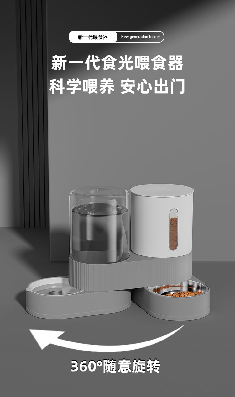 애완동물 자동 급수기, 일체형 고양이 그릇, 개 그릇, 급수기, 대용량 회전식 조합 그릇 및 식품 그릇스토어 가기