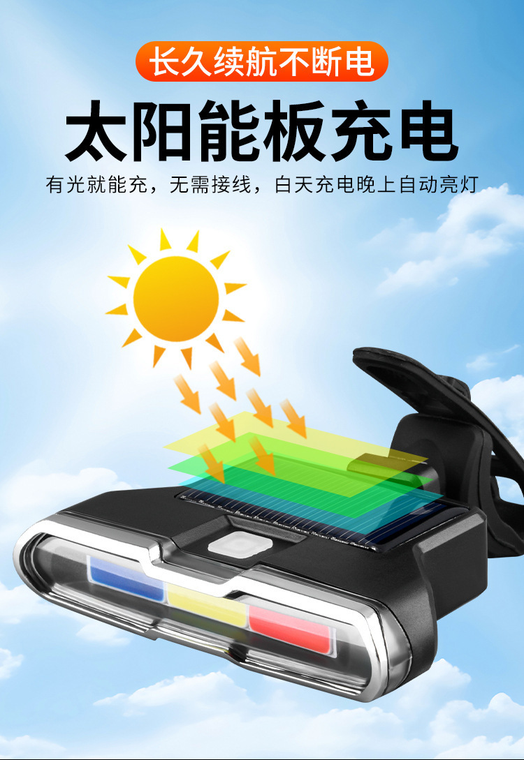 국경 간 새로운 오프로드 자전거 테일 라이트 3 색 야간 경고등 USB 충전 방수 자전거 라이트스토어 가기