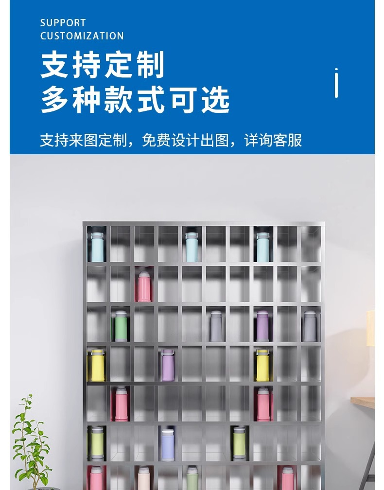 스테인레스 스틸 워터 컵 캐비닛 작업장 직원 워터 컵 보관 캐비닛 라운지 티 컵 보관 사물함 멀티 그리드 워터 컵 홀더스토어 가기