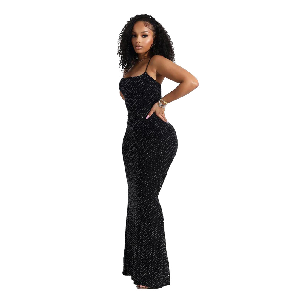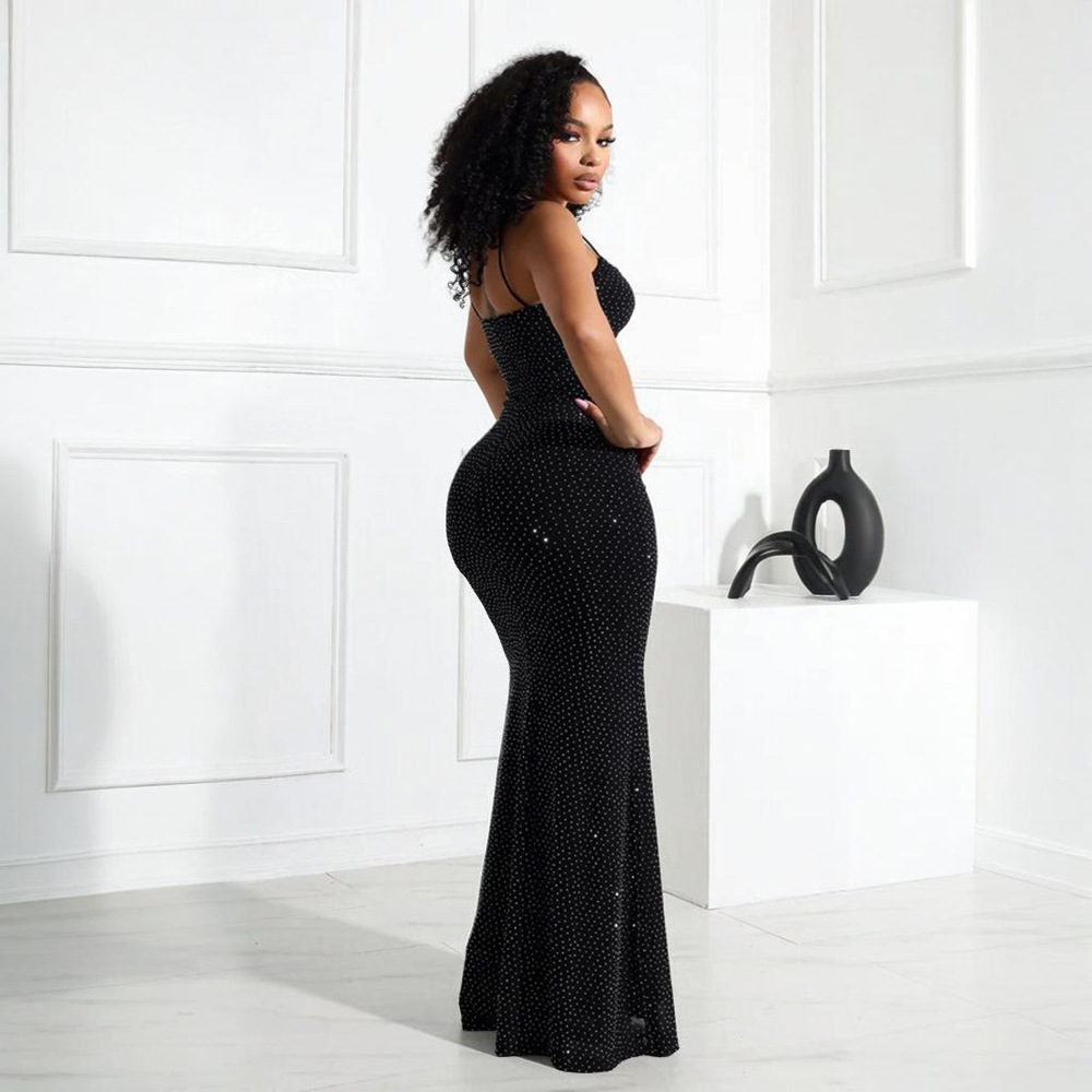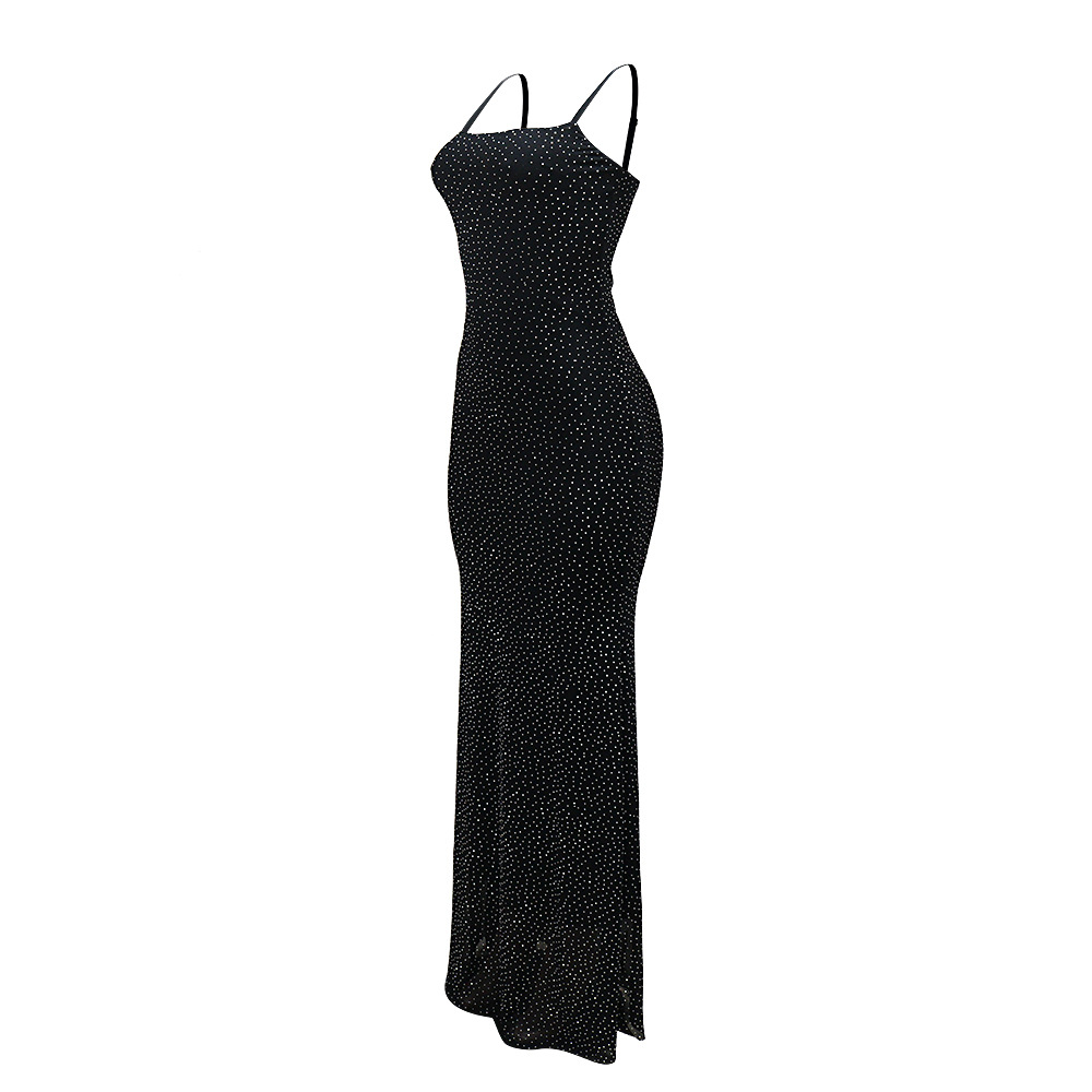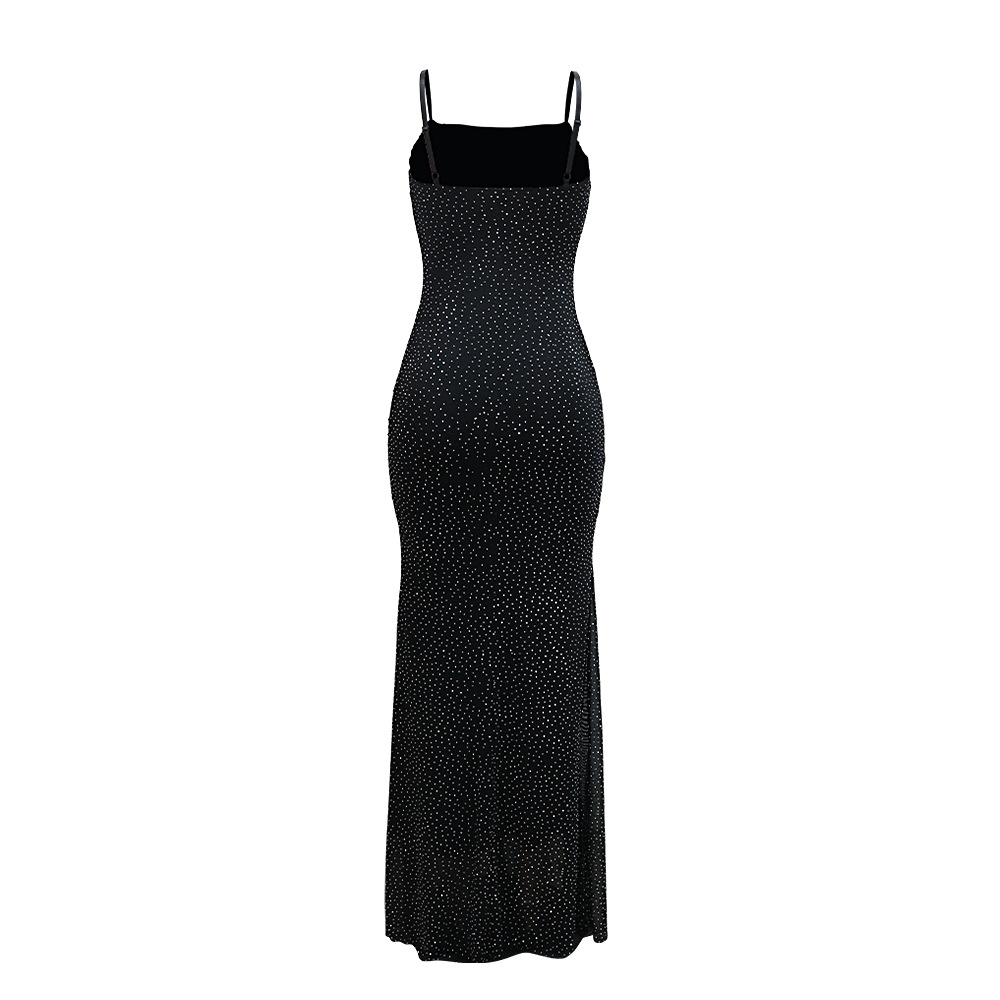 CY901715 유럽과 미국의 아마존 대외 무역 새로운 섹시한 서스펜더 핫 다이아몬드 폴리 에스터 메쉬 드레스 여성용 힙 커버 롱 스커트