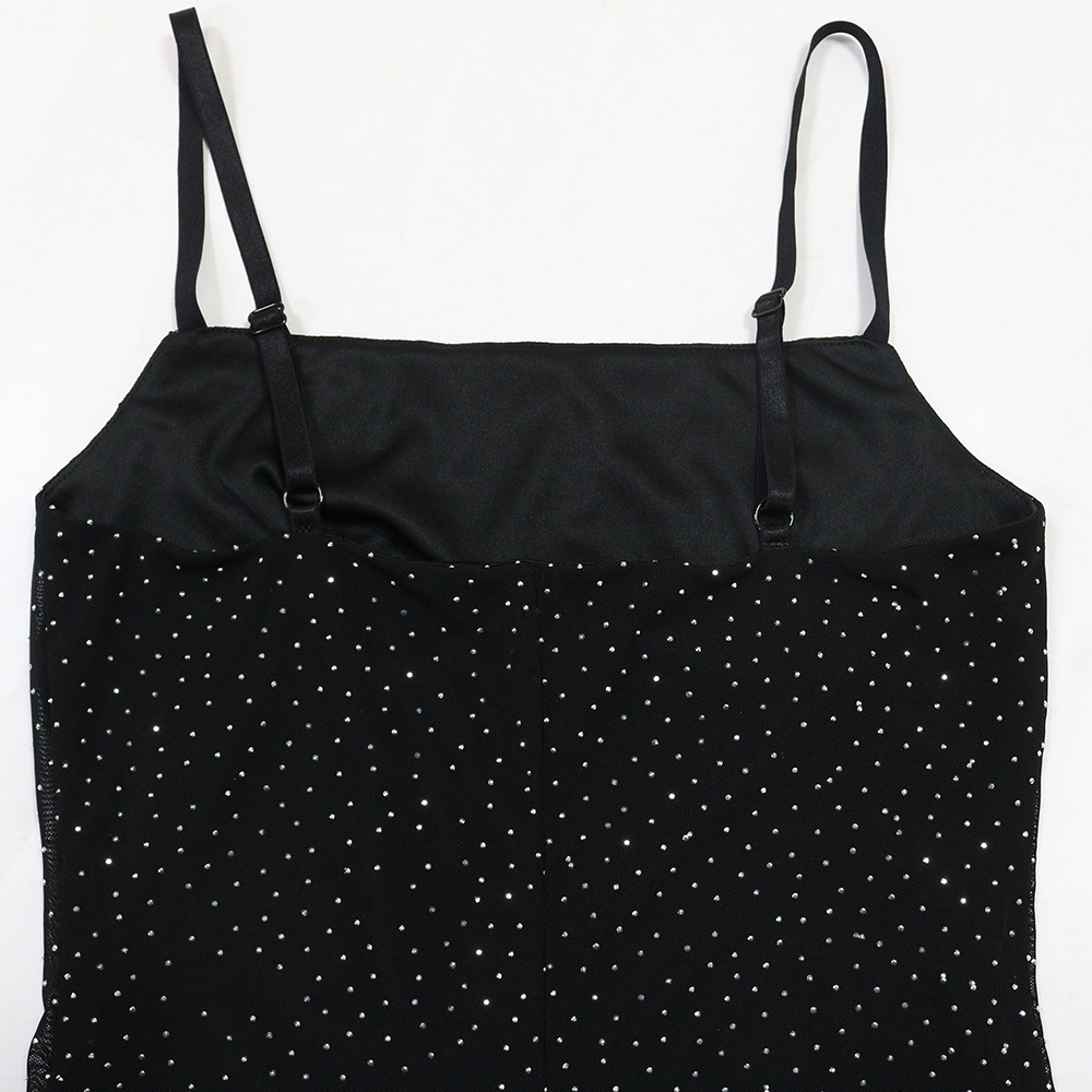 CY901715 유럽과 미국의 아마존 대외 무역 새로운 섹시한 서스펜더 핫 다이아몬드 폴리 에스터 메쉬 드레스 여성용 힙 커버 롱 스커트스토어 가기