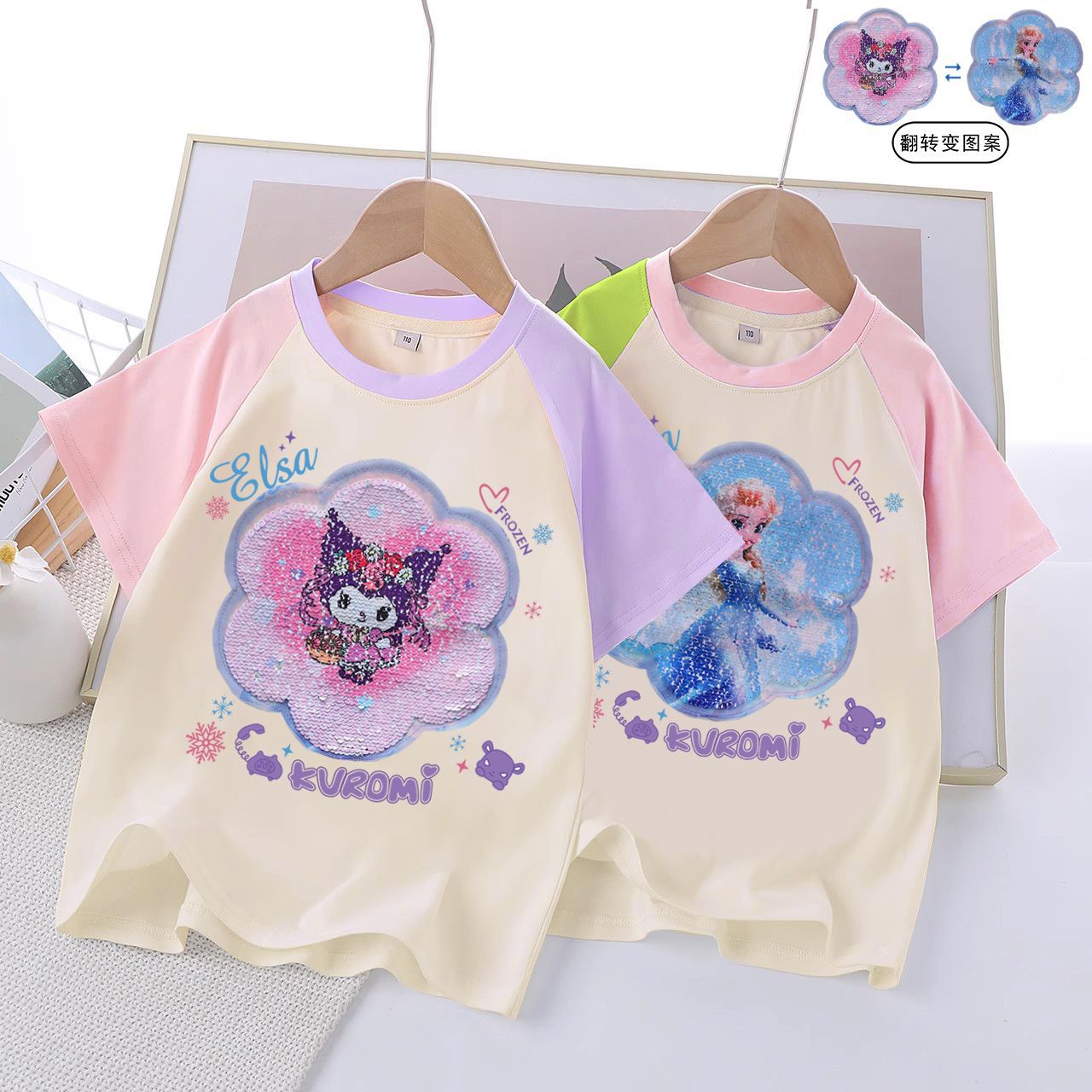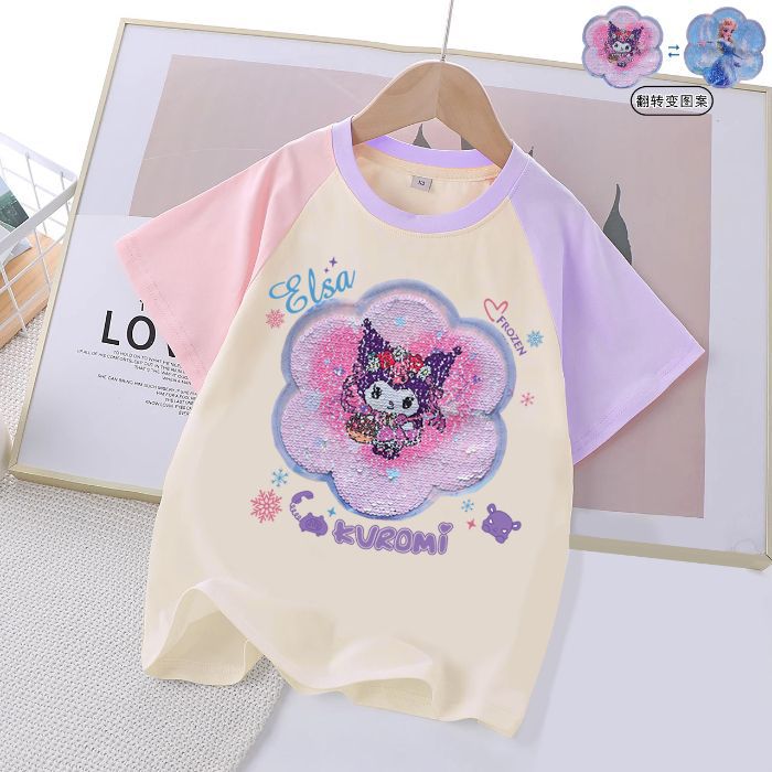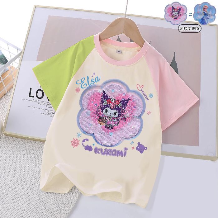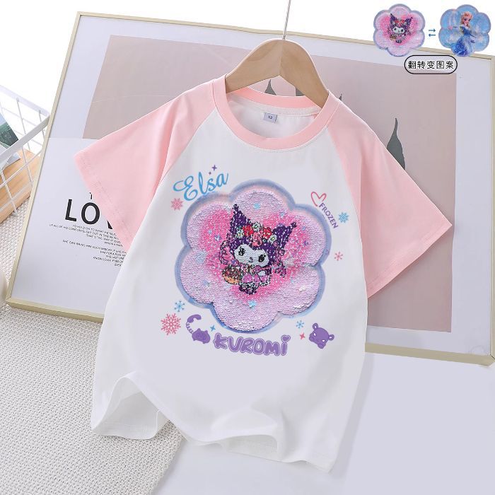 여성 대형 어린이 세퀸 반팔 티셔츠 어린이 여름 2025 년 신면 걸스 대형 어린이 탑베이스 셔츠