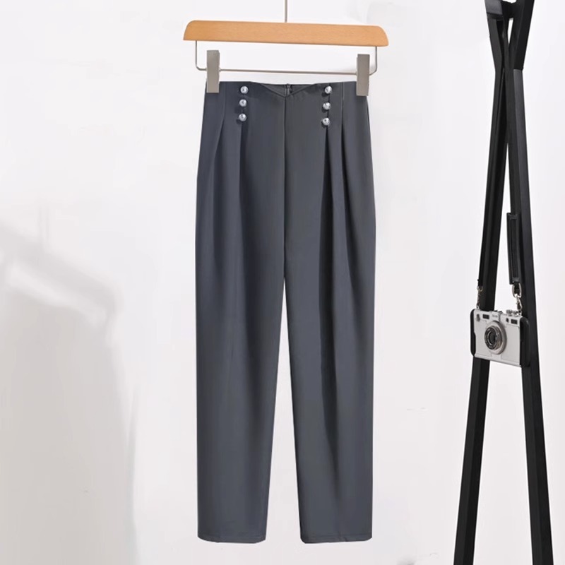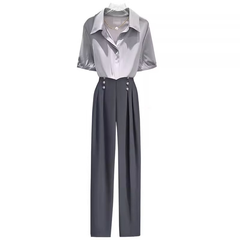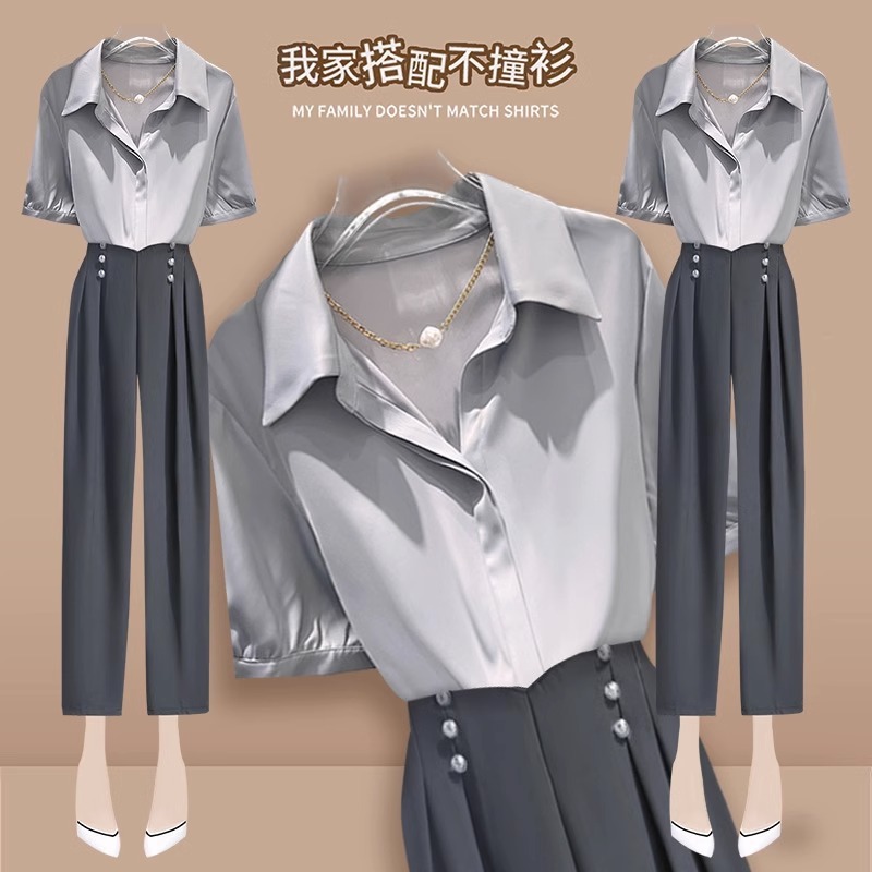 2025 년 여름 한국식 하이 엔드 얇은 옷깃 반팔 셔츠 여성용 하이 웨이스트 드래핑 9 포인트 캐주얼 바지 투피스 세트