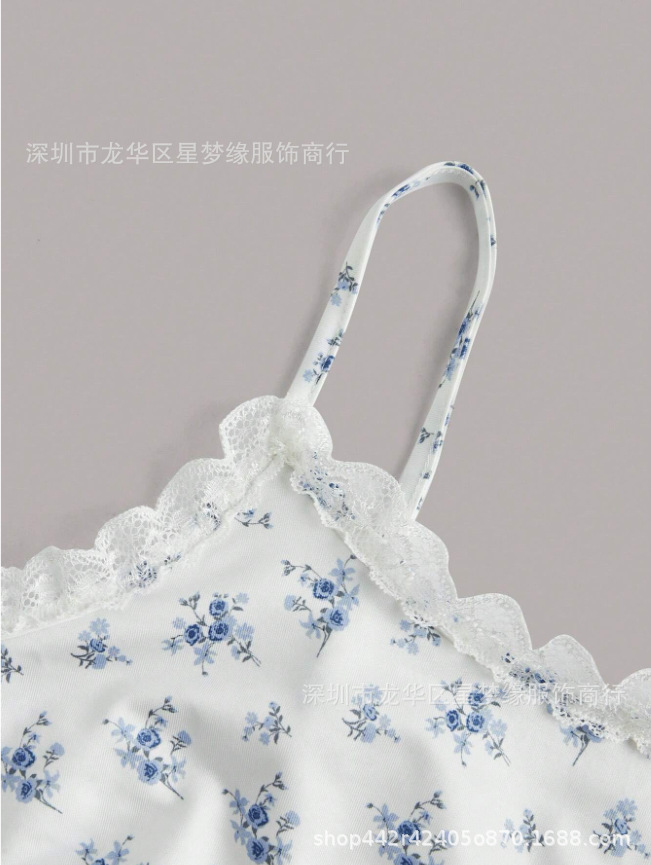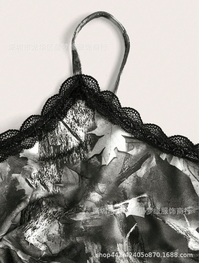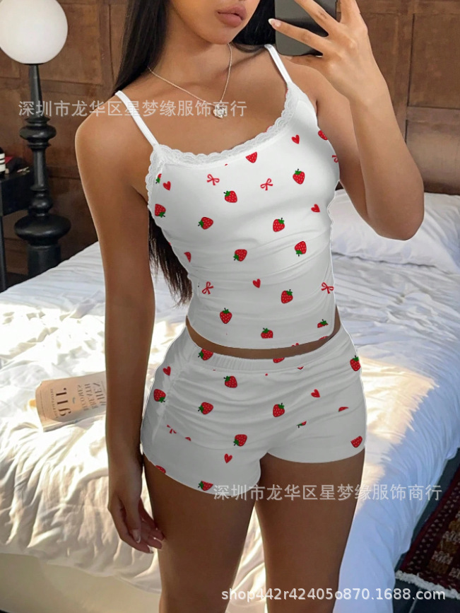 유럽과 미국의 스타일 V 넥 레이스 파자마 여성 세트 여름 새로운 하이 엔드 할로윈 인쇄 홈 의류 투피스 세트스토어 가기