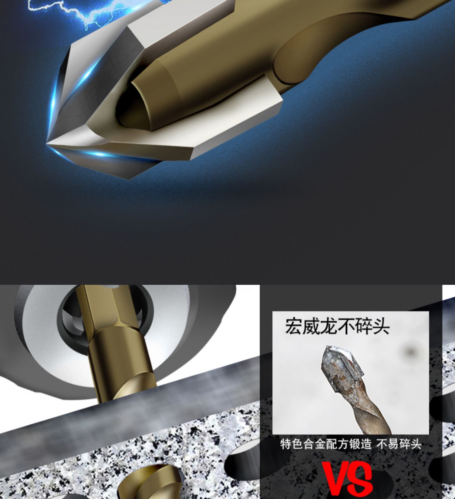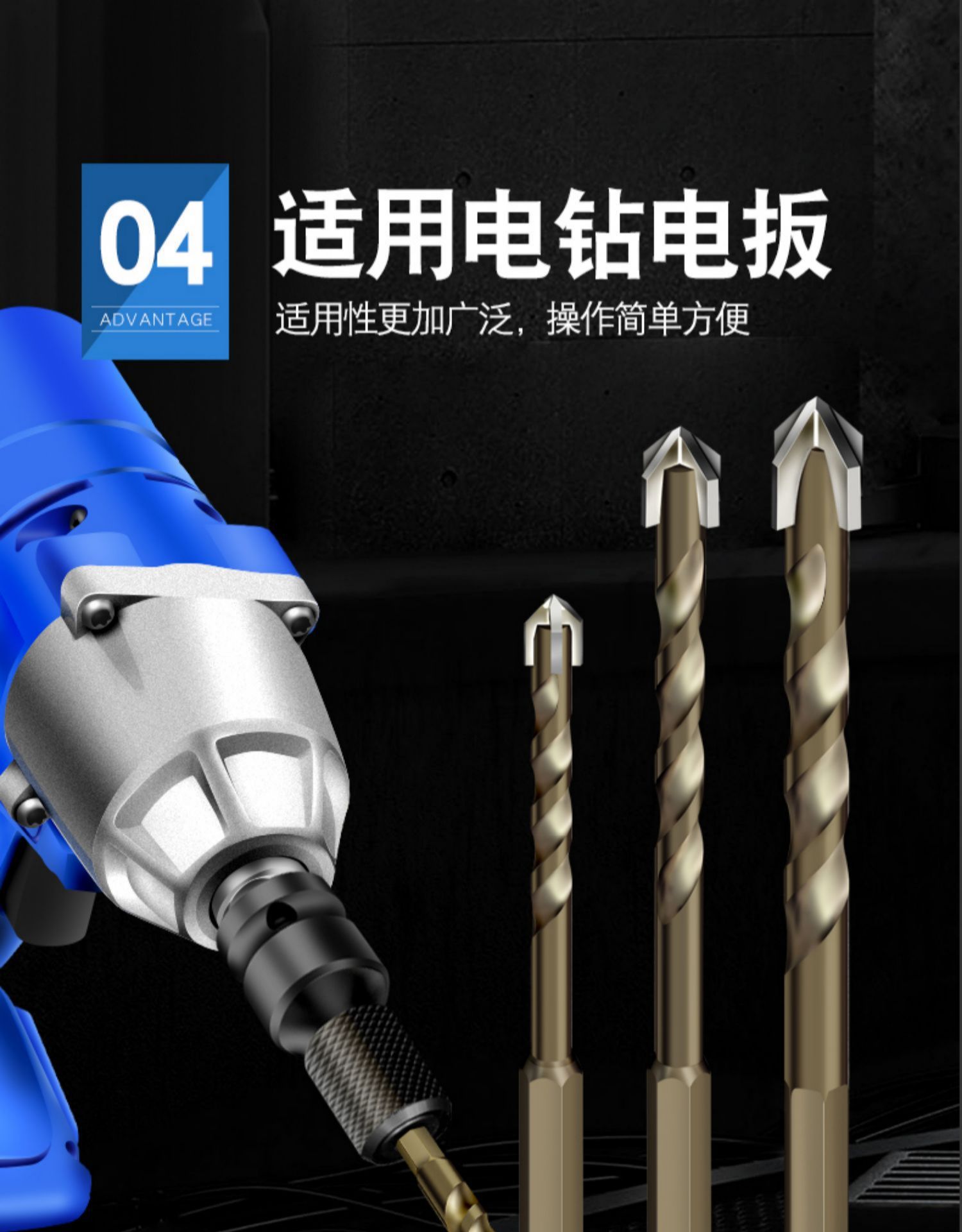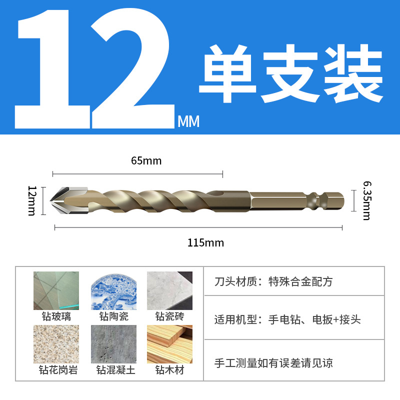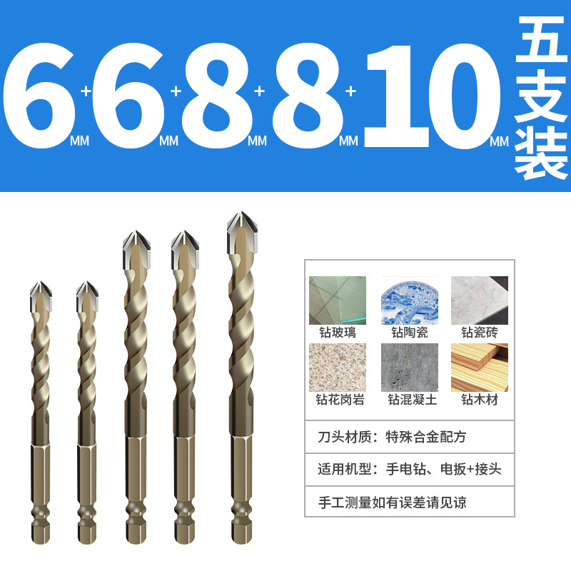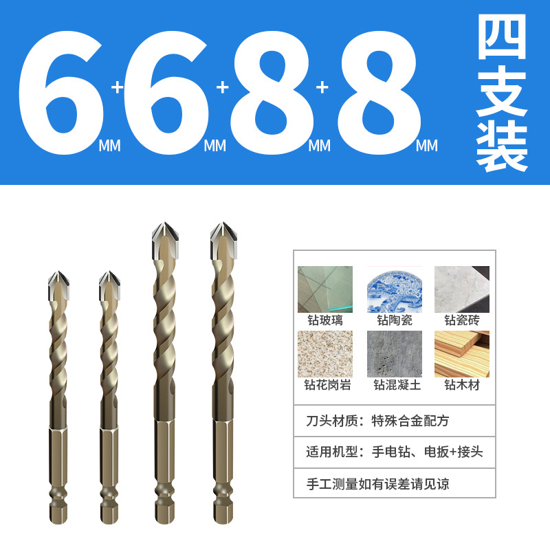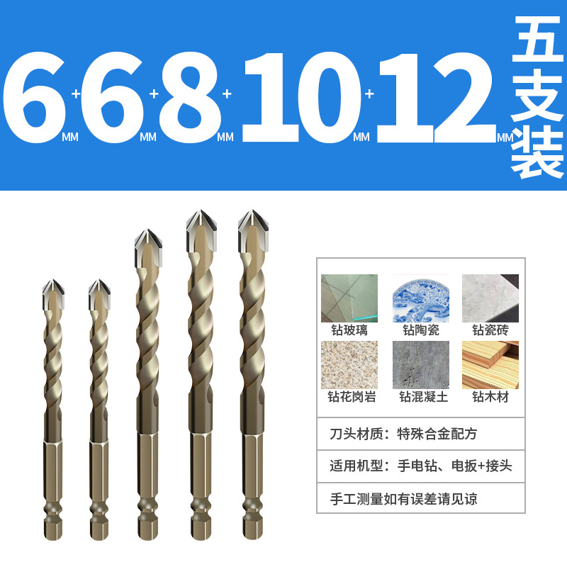 크로스 임팩트 드릴 육각 핸들 6 콘크리트 핸드 드릴 타일 삼각형 드릴 비트 유리 펀칭 구멍 오프너 8스토어 가기