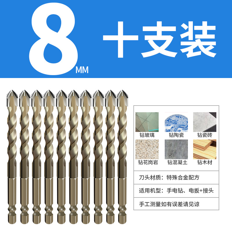 크로스 임팩트 드릴 육각 핸들 6 콘크리트 핸드 드릴 타일 삼각형 드릴 비트 유리 펀칭 구멍 오프너 8