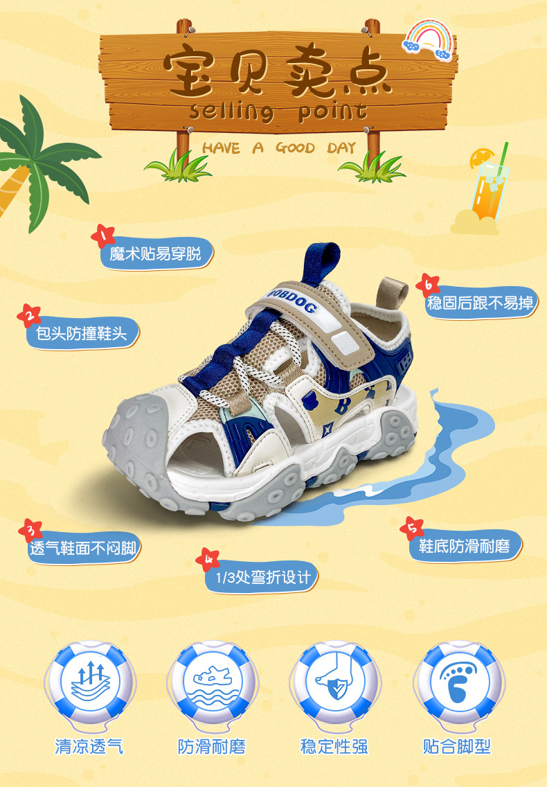 Babu Bean Boys Beach Shoes 2025 여름 새로운 도착 중 및 대형 키즈 소녀 샌들, 힙 발가락 어린이 스포츠 샌들스토어 가기
