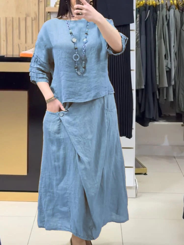 2025 국경 유럽 및 미국 아마존 폭발 새로운 대외 무역 여성 캐주얼 단색 느슨한 스커트 투피스 세트