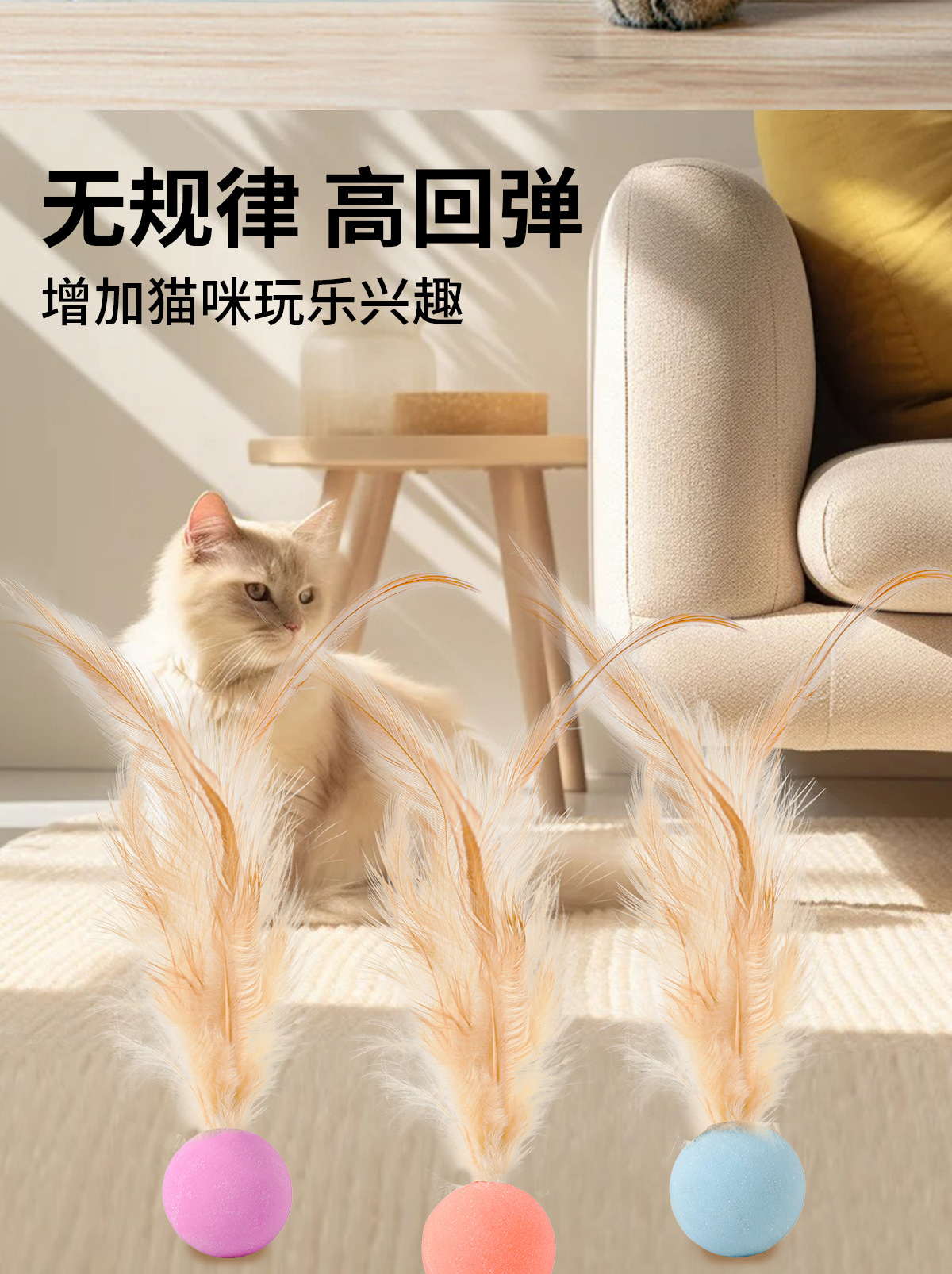 새로운 인터넷 연예인 치킨 깃털 고무 탄성 공 고양이 장난감 자기 즐거움과 지루함을 완화 추구 대화 형 애완 동물 장난감스토어 가기