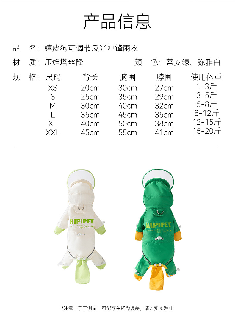 개 올인원 방수 조정 가능한 반사 충전 비옷 중소 규모 개 비오는 날 개 옷 애완 동물 가방 꼬리 비옷