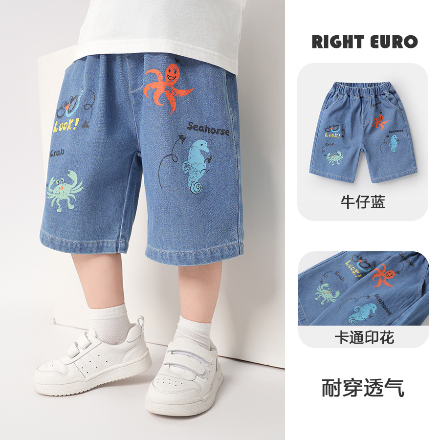 남학생 데님 짧은 바지 여름 착용 아동복 어린이 아기 5 점 바지 소년 중형 바지 여름 얇은 여름스토어 가기
