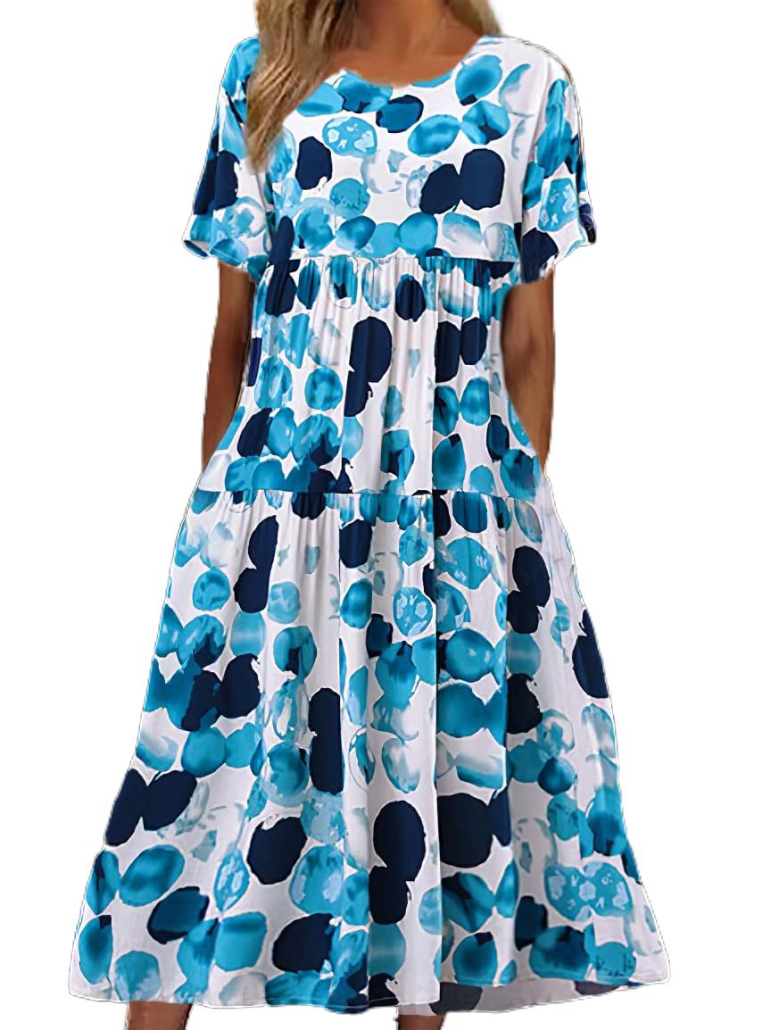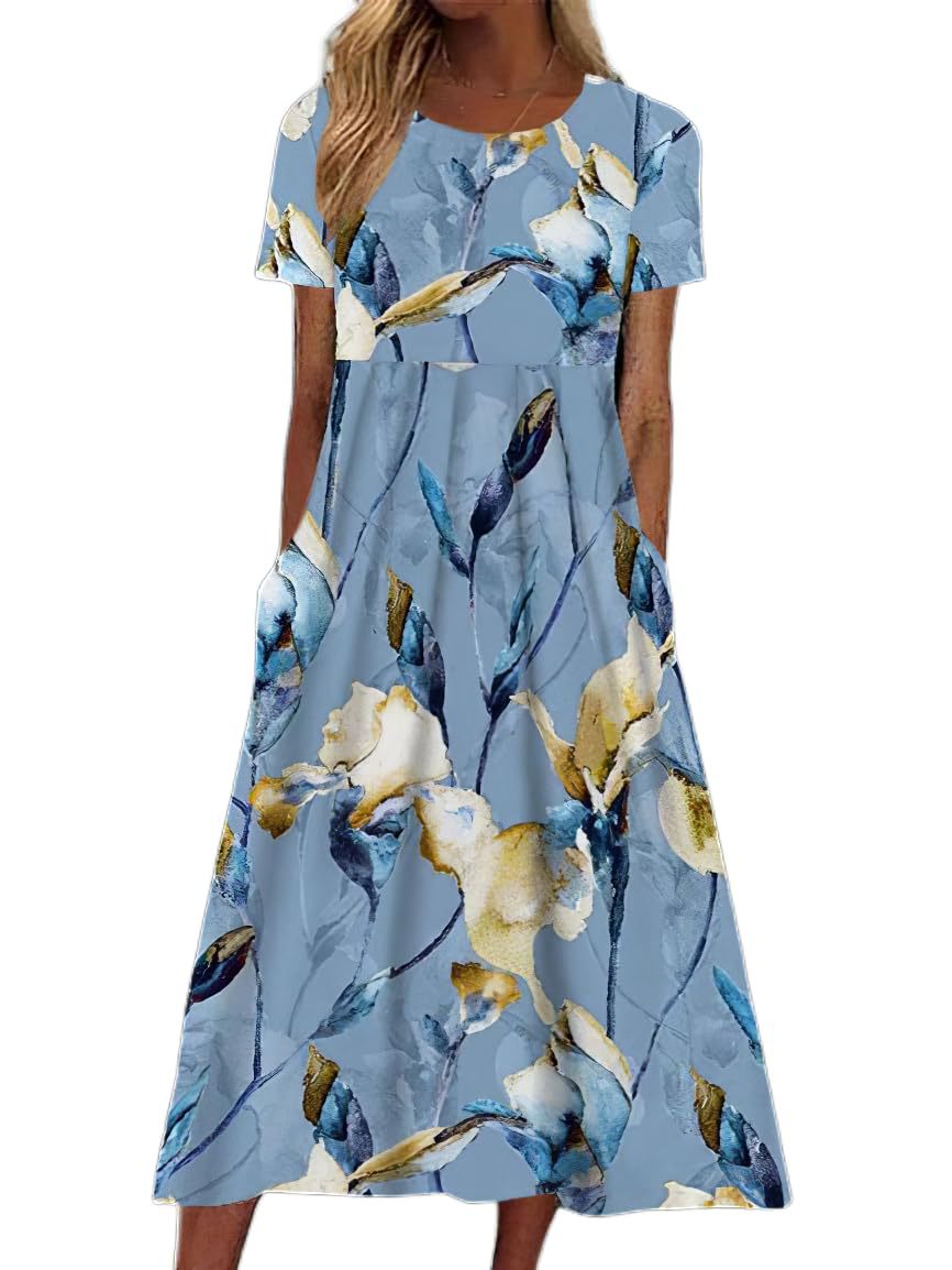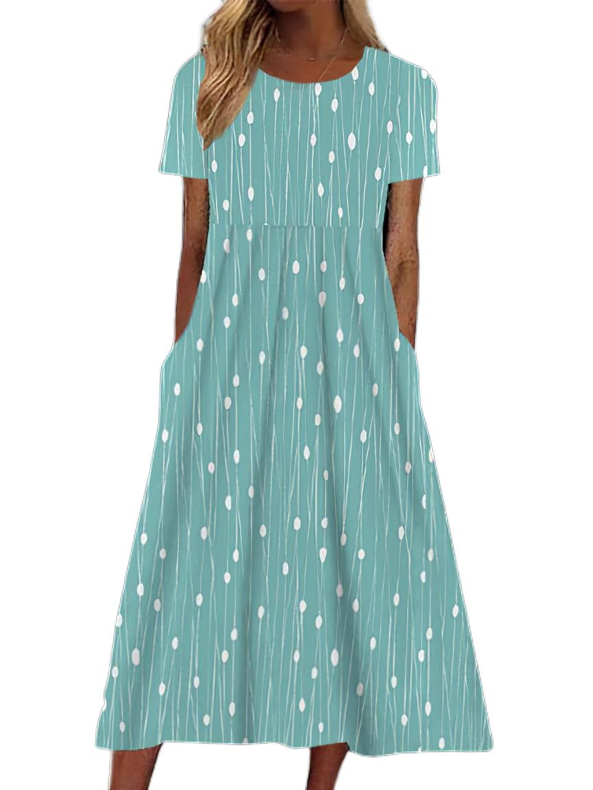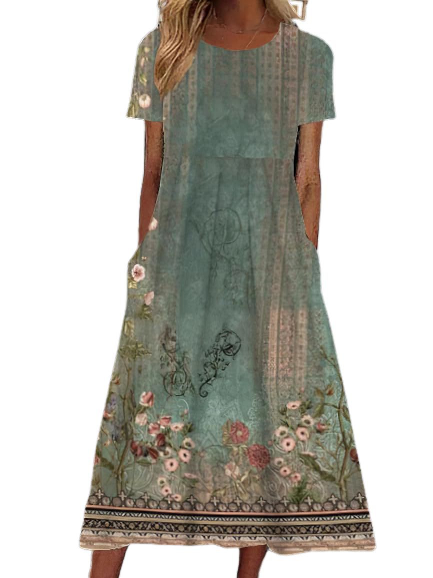 2025 유럽과 미국 아마존 여름 새 스타일 여성 라운드 넥 짧은 소매 긴 드레스 보헤미안 프린트 드레스 여성스토어 가기