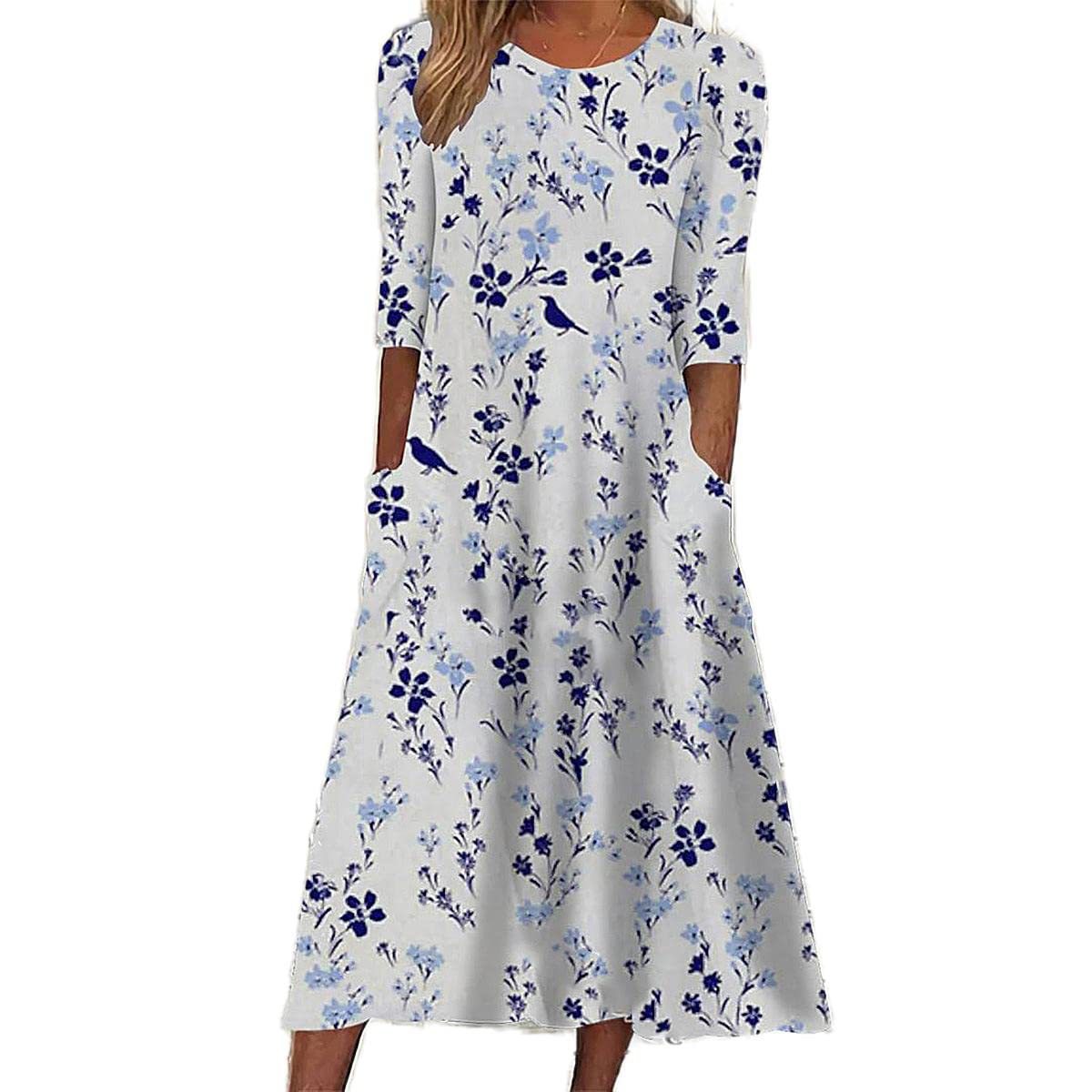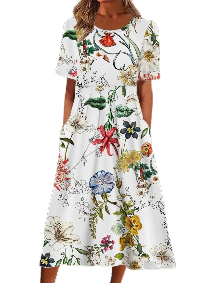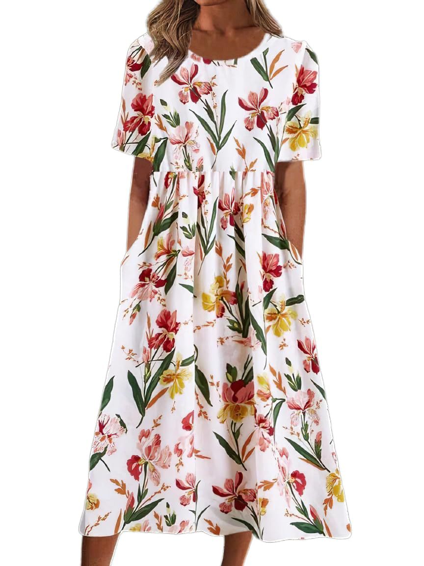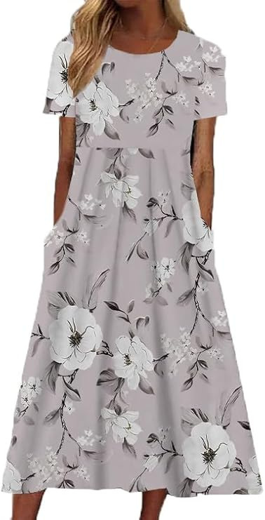 2025 유럽과 미국 아마존 여름 새 스타일 여성 라운드 넥 짧은 소매 긴 드레스 보헤미안 프린트 드레스 여성스토어 가기