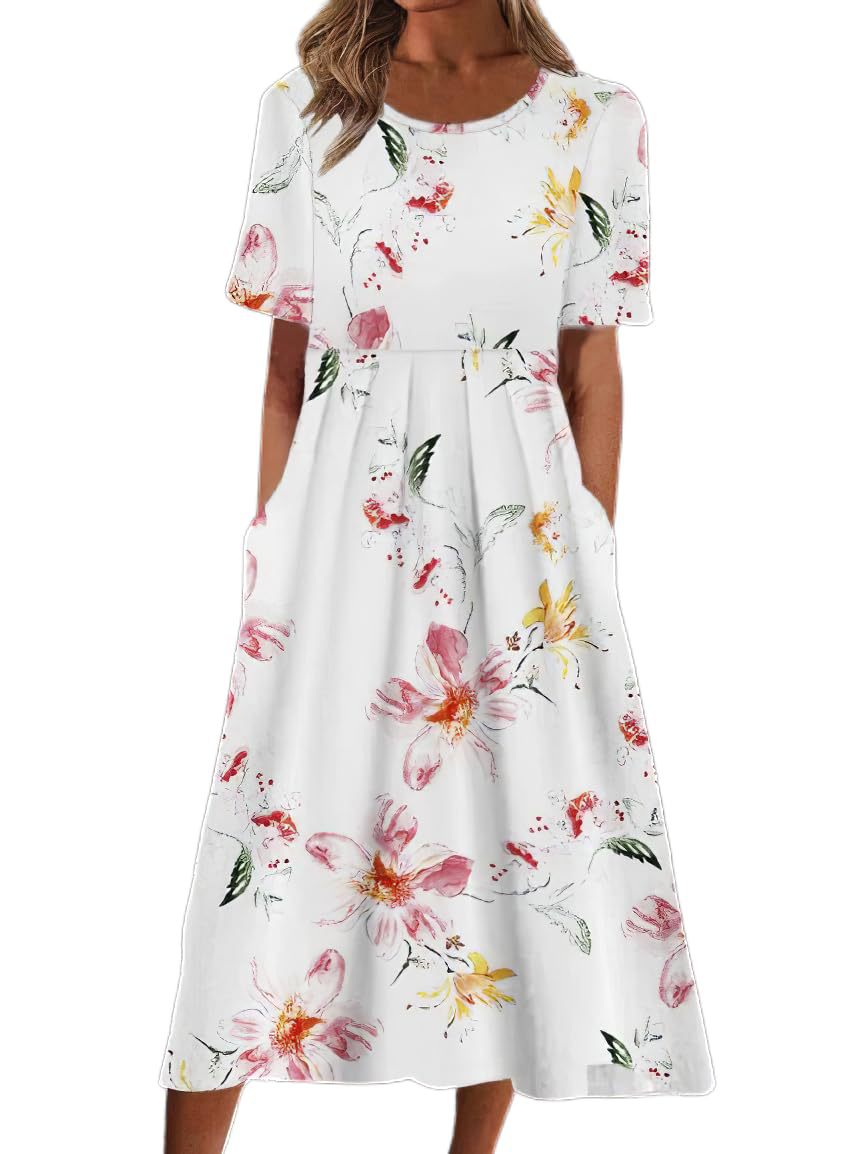 2025 유럽과 미국 아마존 여름 새 스타일 여성 라운드 넥 짧은 소매 긴 드레스 보헤미안 프린트 드레스 여성