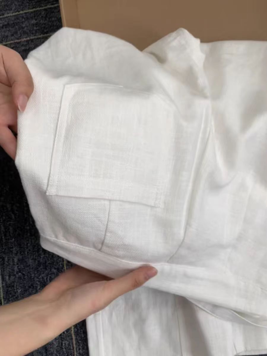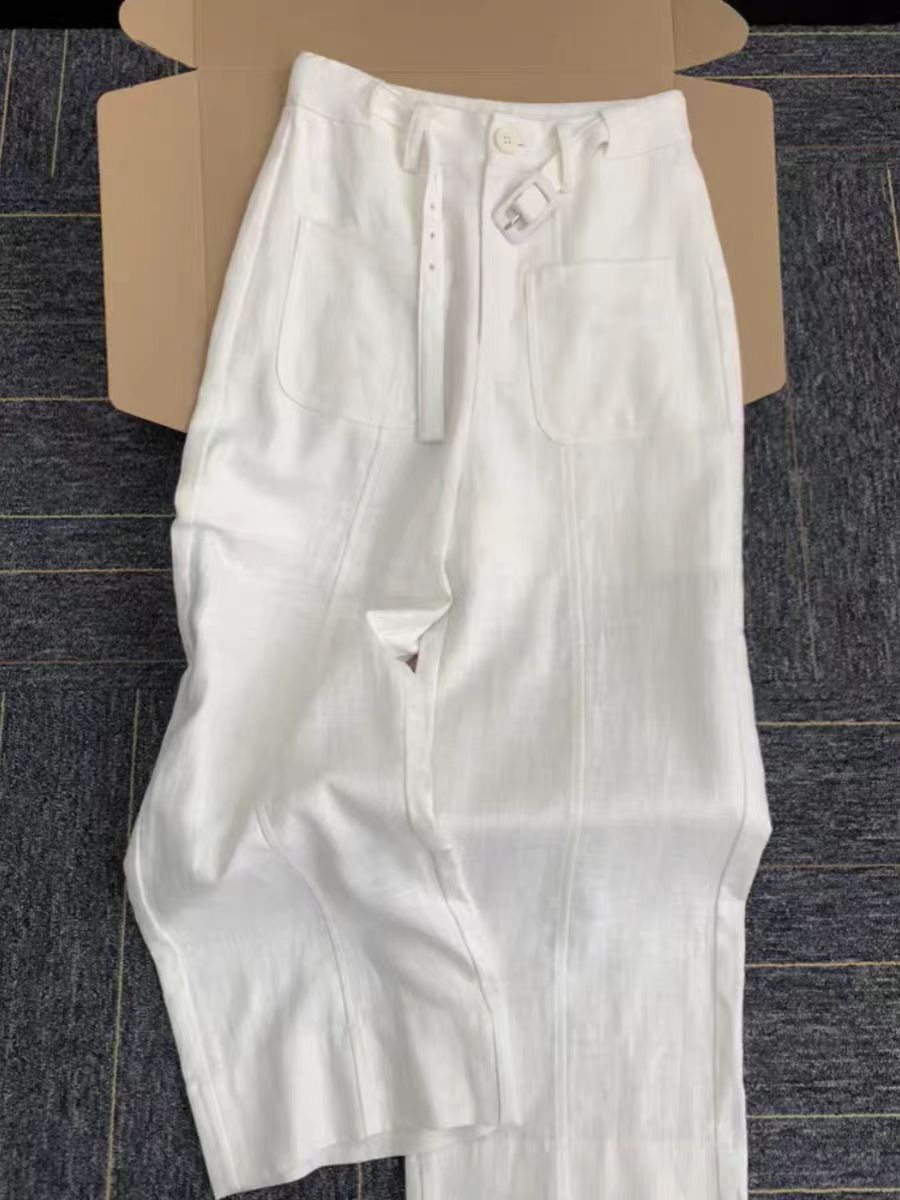 CHAO级推荐!松弛感老钱风~极简大气白色亚麻高级感休闲阔腿西裤