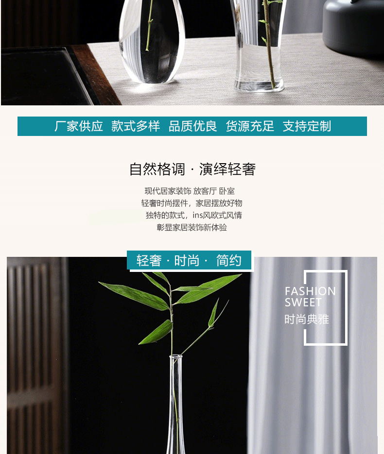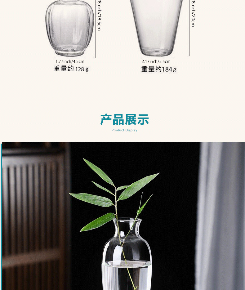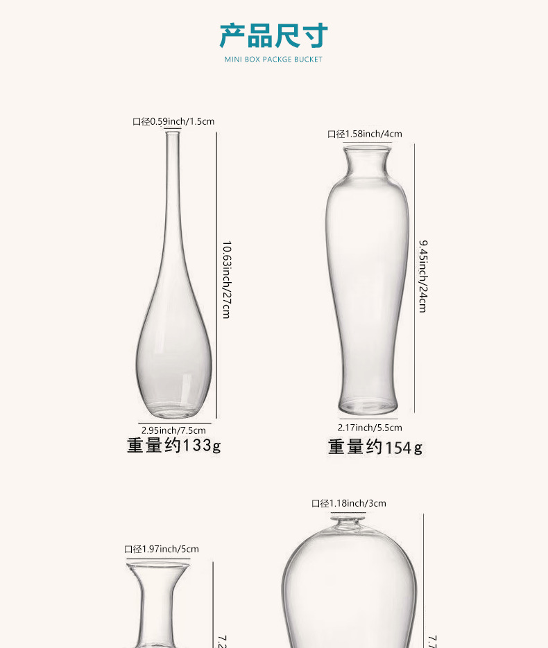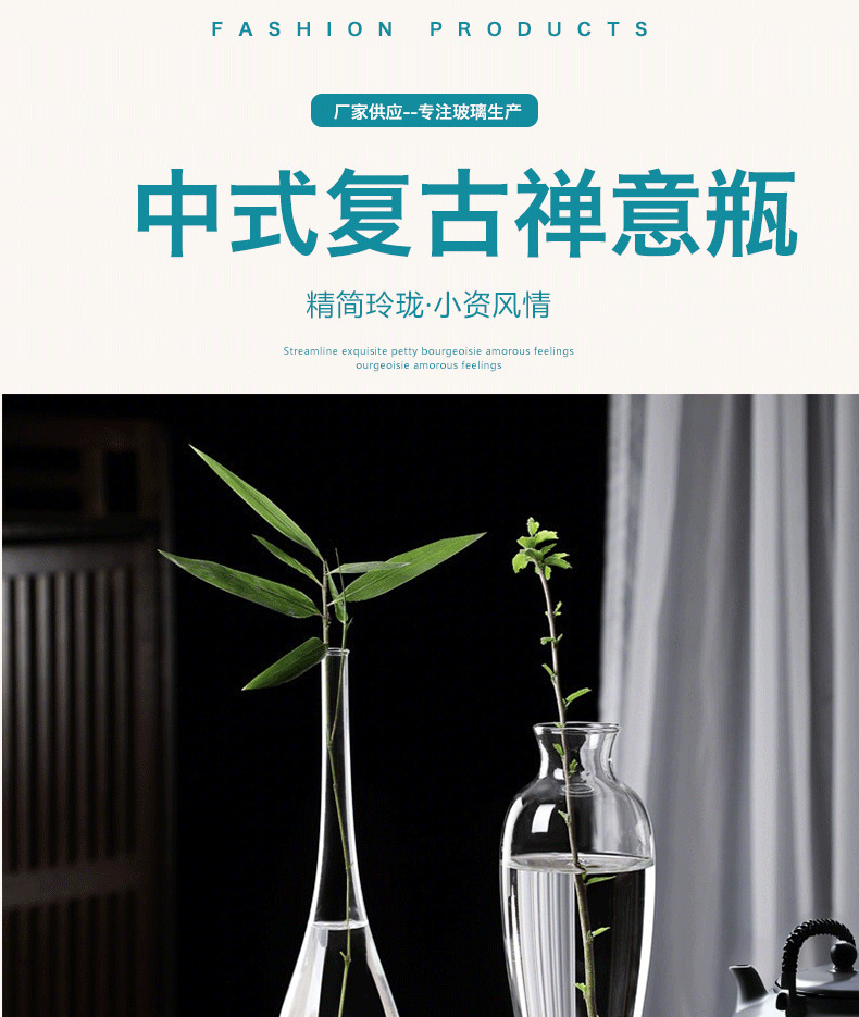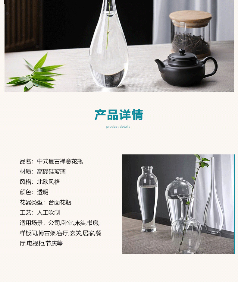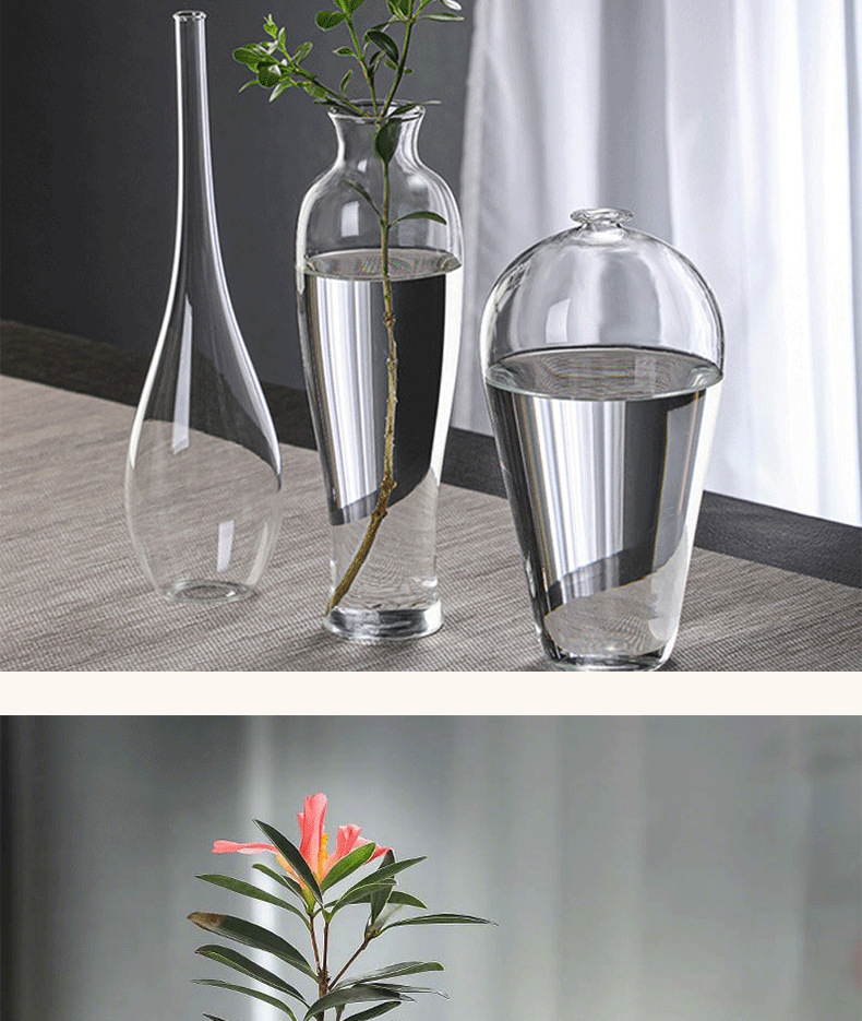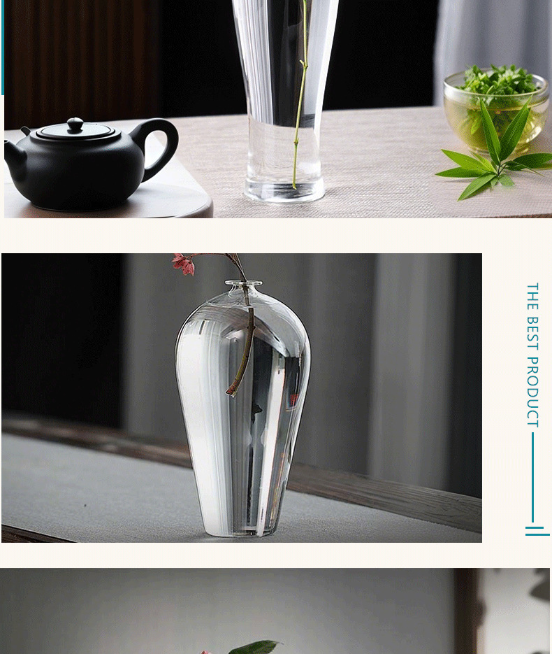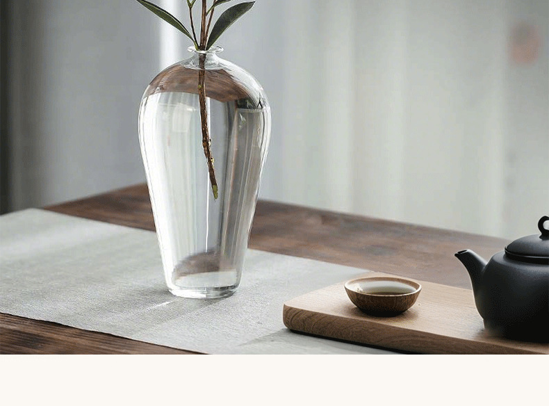 중국 선 스타일 작은 입 유리 꽃병 매화병 옥 깨끗한 병 관음병 수경 꽃병 투명 꽃꽂이 다도 장식품스토어 가기