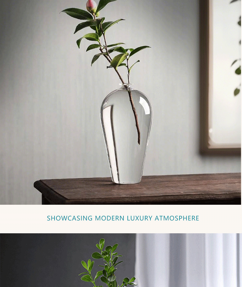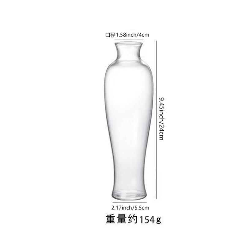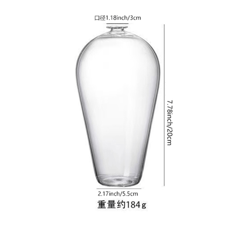 중국 선 스타일 작은 입 유리 꽃병 매화병 옥 깨끗한 병 관음병 수경 꽃병 투명 꽃꽂이 다도 장식품