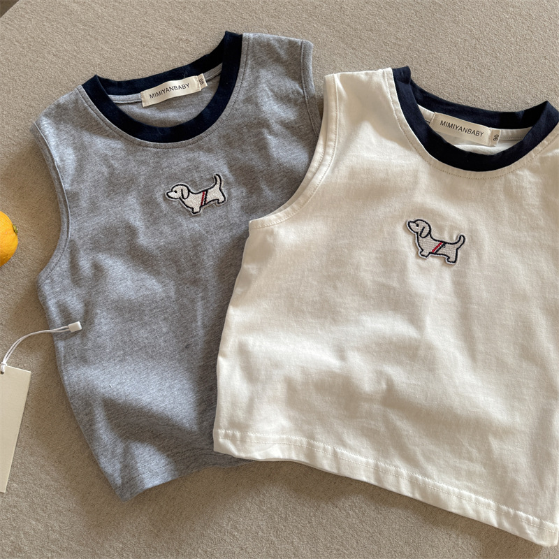 어린이 조끼 2025 여름 한국식 새 소년과 소녀 서양식 만화 대조 컬러 칼라 아기 캐주얼 조끼 트렌디스토어 가기