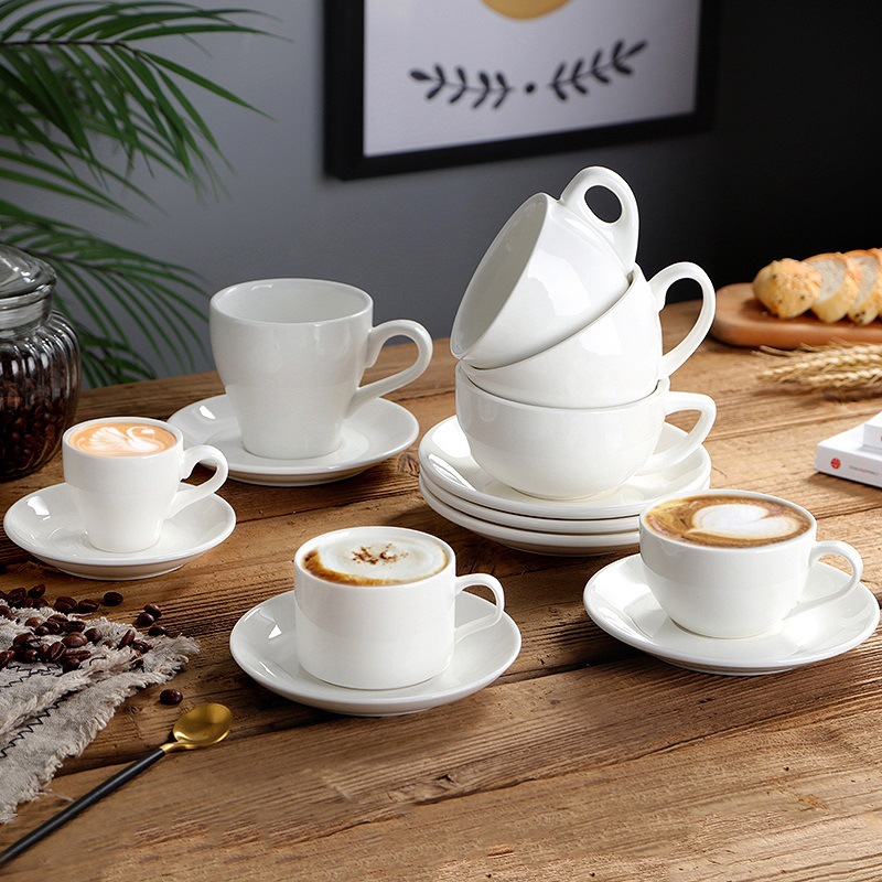 카푸치노 세라믹 큰 입 순수한 흰색 320 세트 꽃 양각 철 사와다 컵 커피 이탈리아 집중 ml