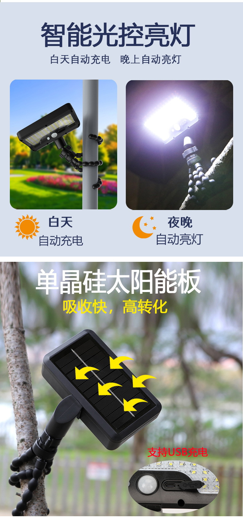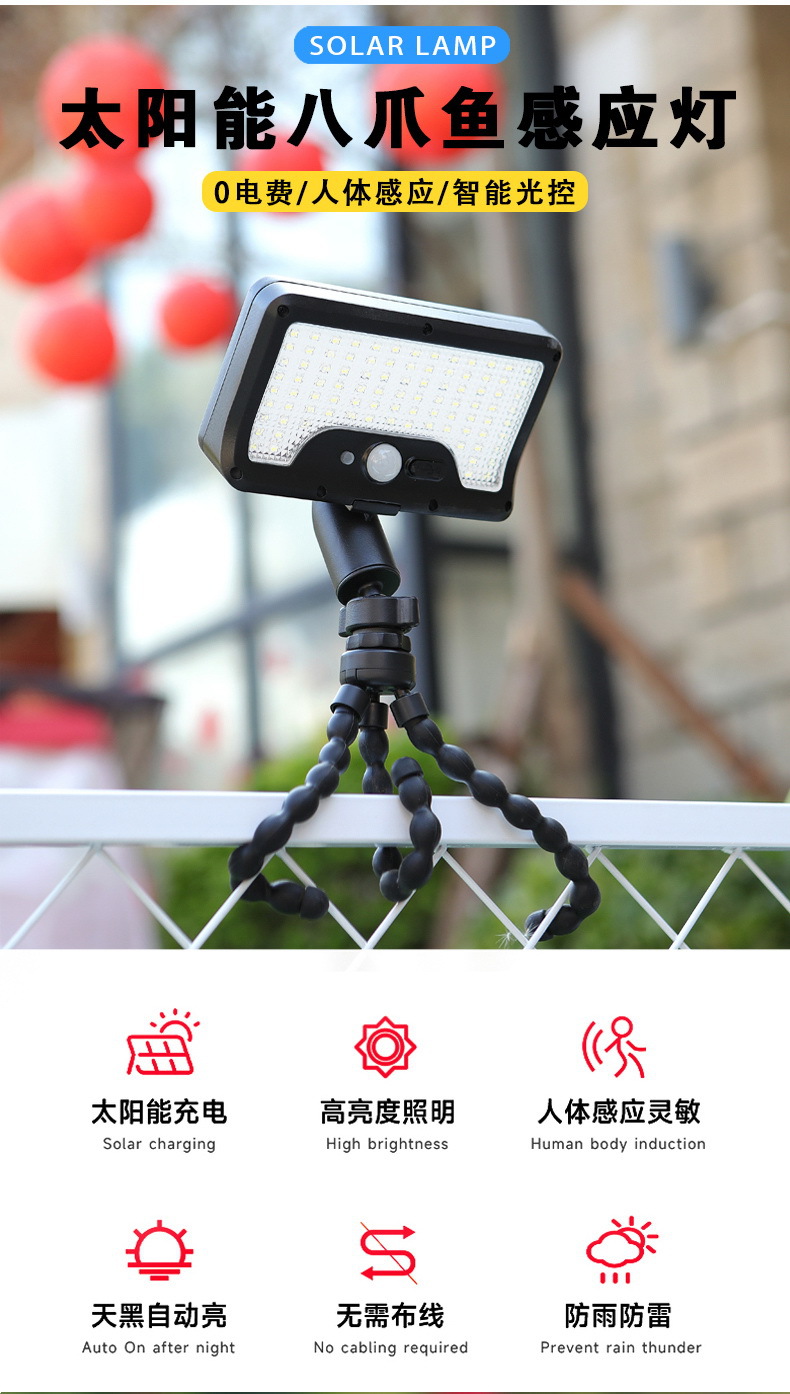 국경 간 뜨거운 판매 문어 태양 빛 야외 클립 정원 라이트 스트리트 라이트 홈 벽 빛 새로운 유도 방수스토어 가기