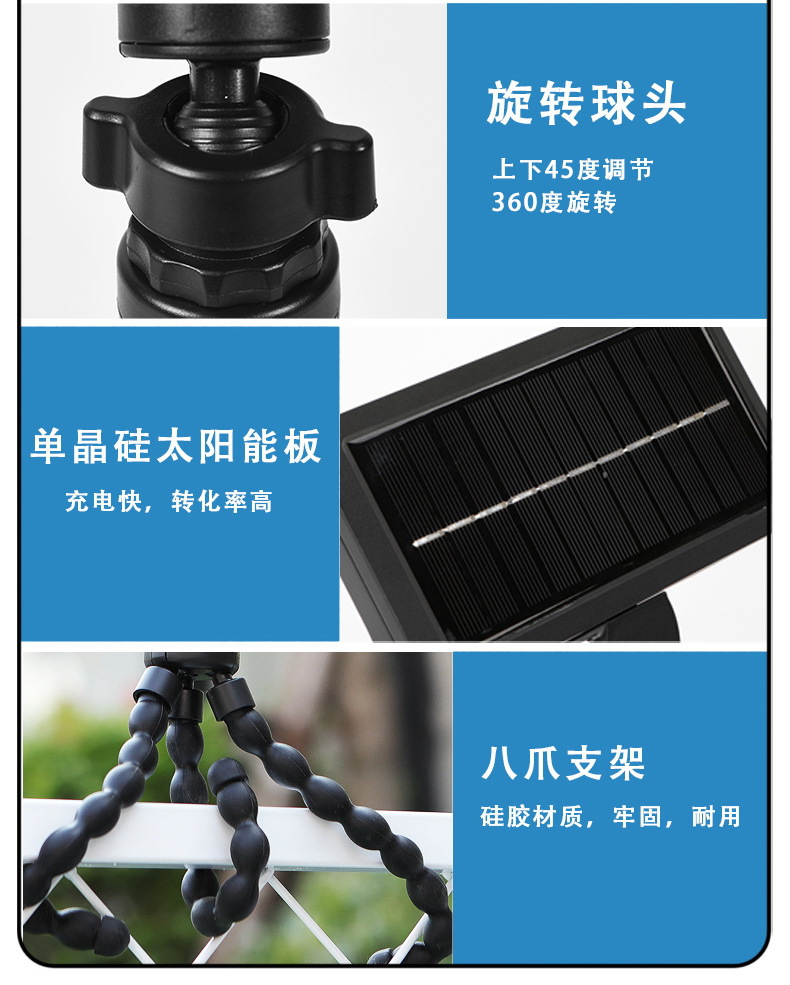 국경 간 뜨거운 판매 문어 태양 빛 야외 클립 정원 라이트 스트리트 라이트 홈 벽 빛 새로운 유도 방수