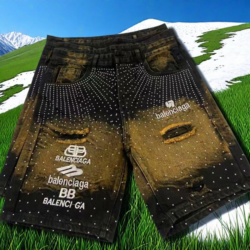 남자 데님, 아프리카 데님 블랙과 그레이 홀 비폭탄 올매치 패셔너블 여름 새로운 5 점 데님 국경
