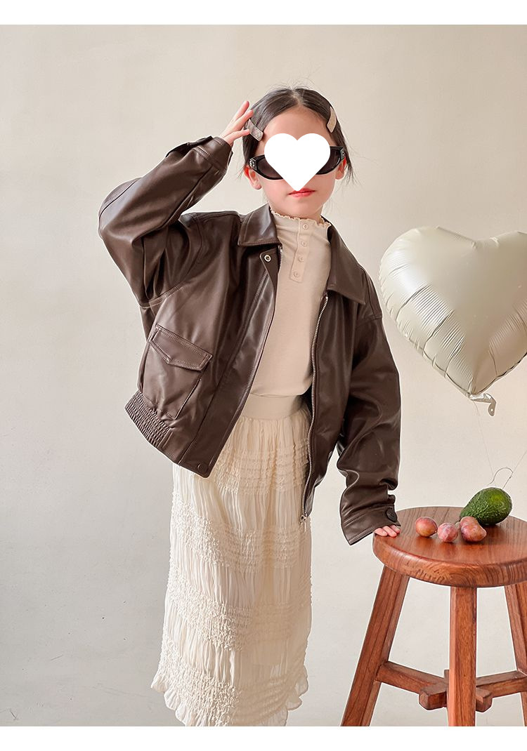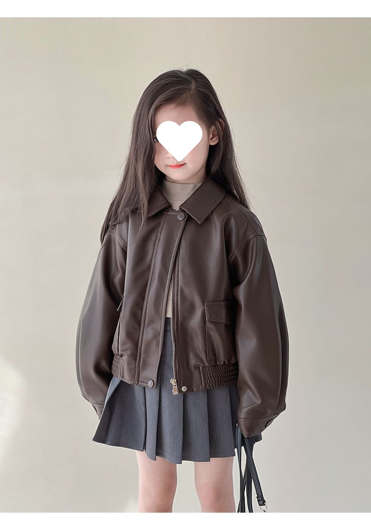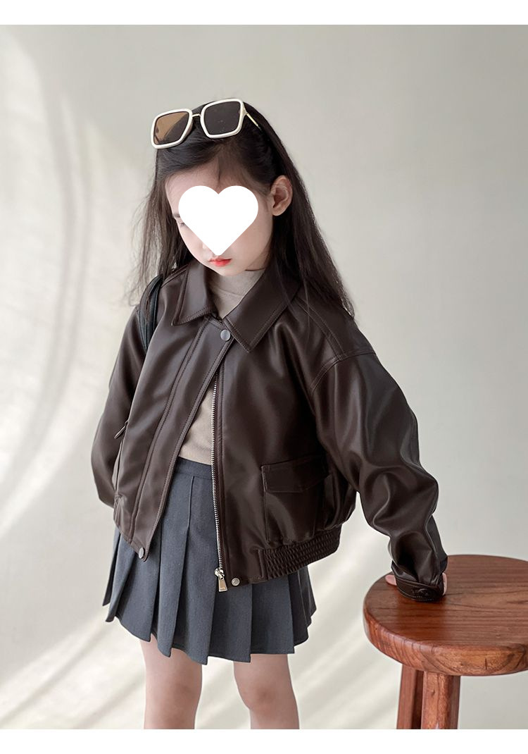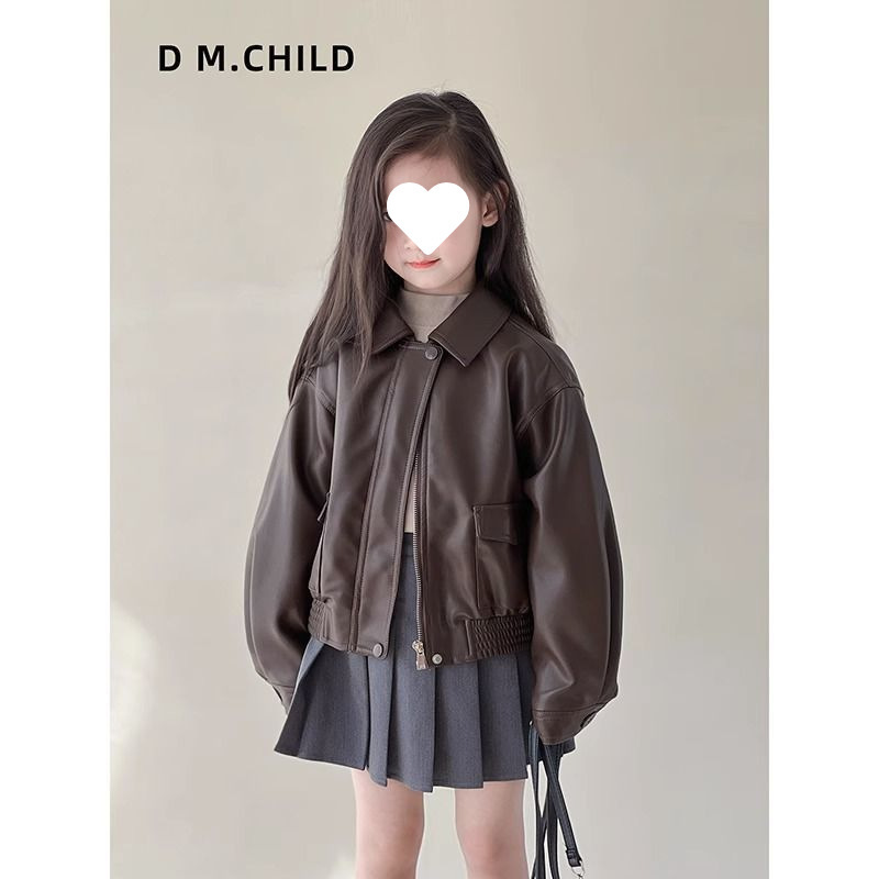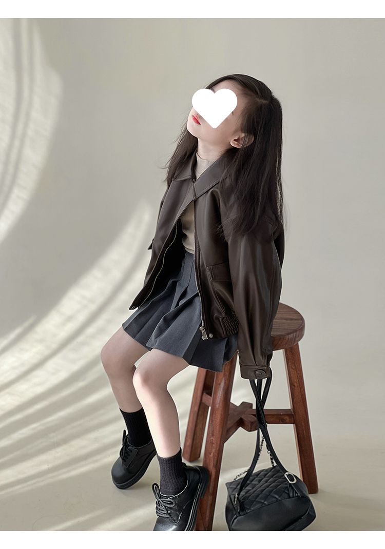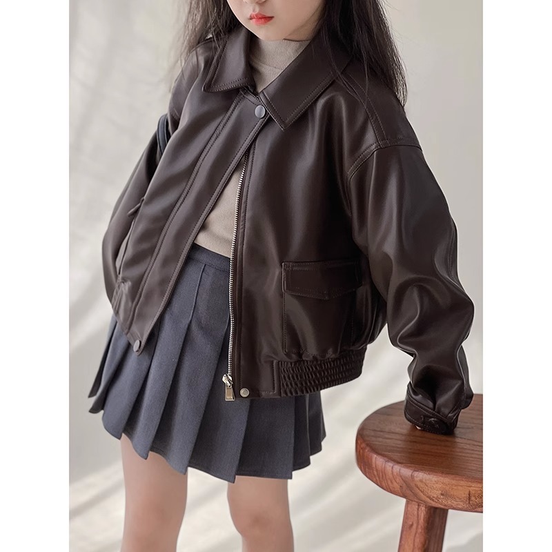 소녀 코트 봄과 가을 2025 새로운 어린이 가죽 코트 아기의 가죽 재킷 오토바이 스타일스토어 가기