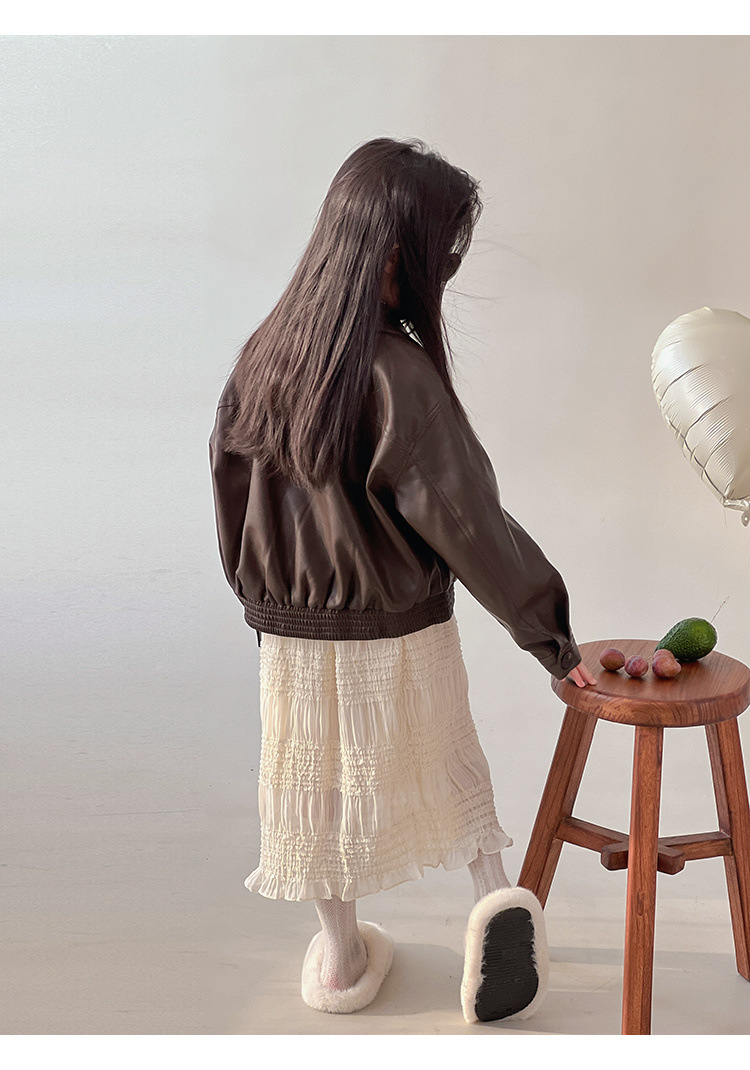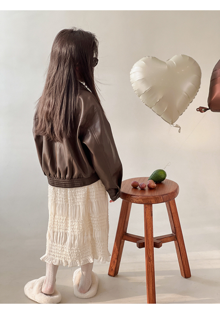 소녀 코트 봄과 가을 2025 새로운 어린이 가죽 코트 아기의 가죽 재킷 오토바이 스타일