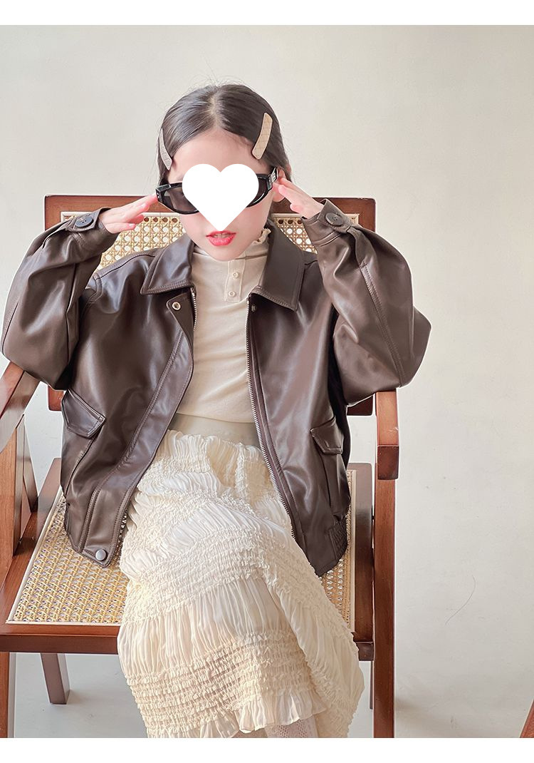 • 다크 브라운 가죽 자켓 봄, 가을 스타일