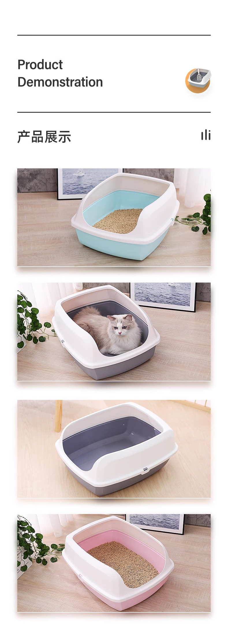 * 品名/Trade name 开放式猫砂盆(中号/大号)(灰色/天蓝色/粉色/棕色)