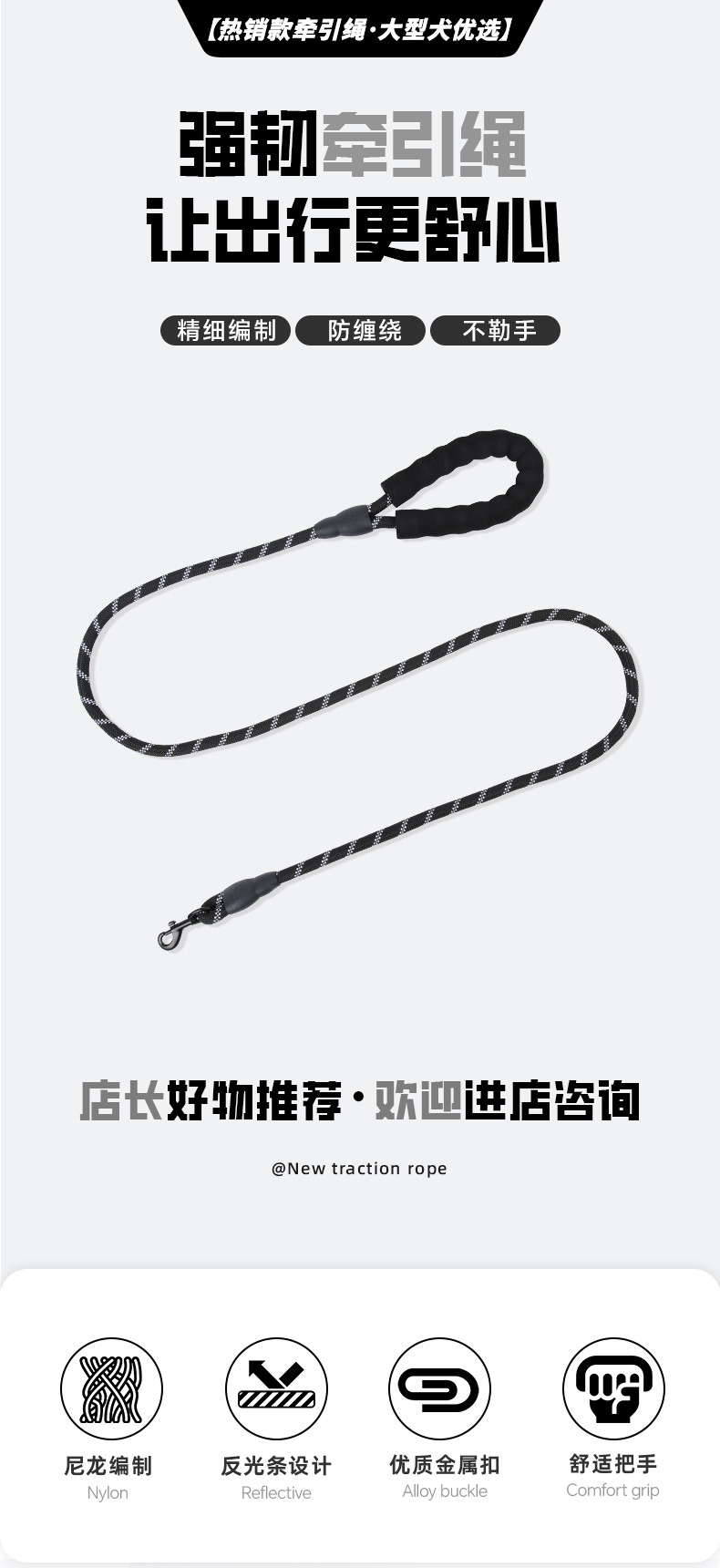 새로운 개 견인 로프 폭발 방지 반사 애완 동물 탄성 로프 중형 및 대형 개 로프 개 걷는 로프 도매스토어 가기