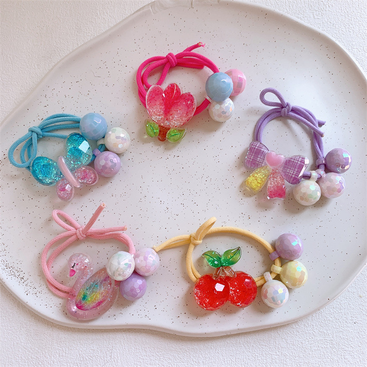 새로운 어린이 빛나는 만화 꽃 머리 반지 소녀는 머리 넥타이 포니 테일 고무 텐돈 머리 밧줄 매듭 구슬 머리 밧줄을 치지 않습니다스토어 가기