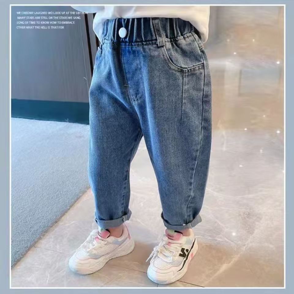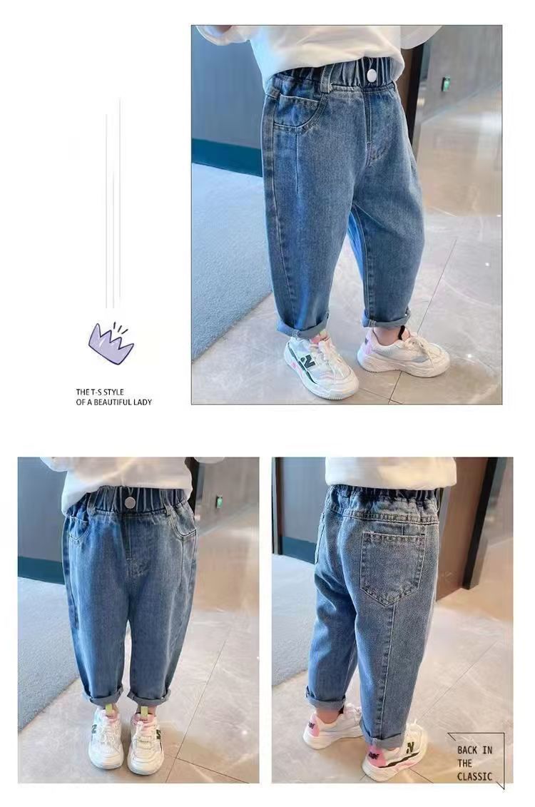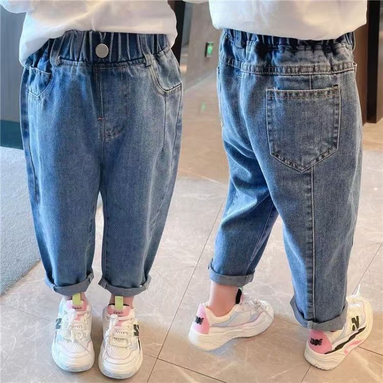 새로운 스타일의 소녀와 소년 청바지, 봄과 가을, 루즈하고 패셔너블한 한국 스타일의 아동 바지, 패셔너블한 새로운 가을 바지, 트렌디한 바지스토어 가기