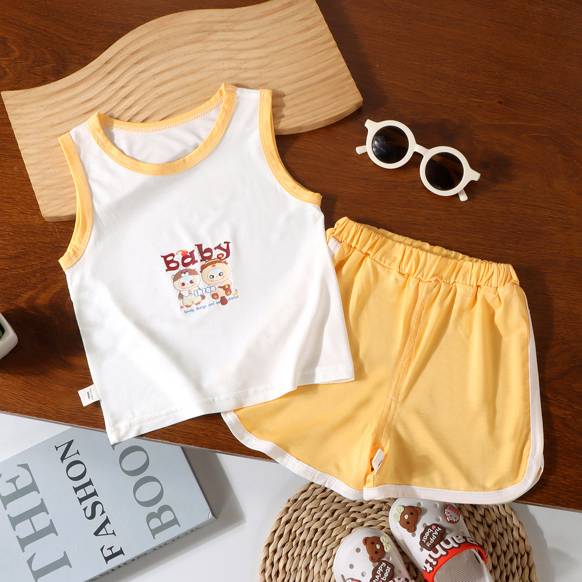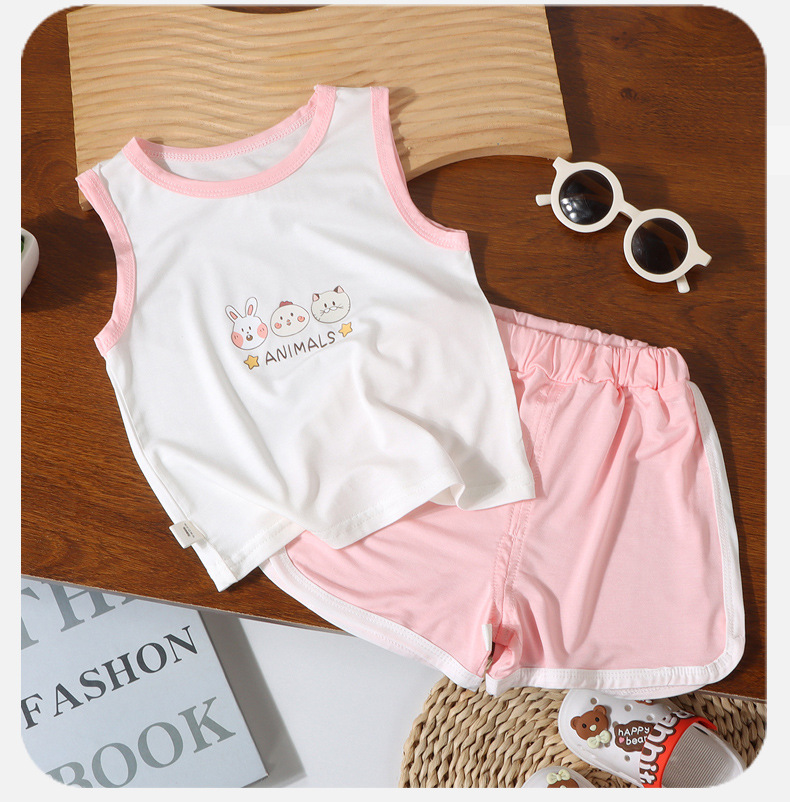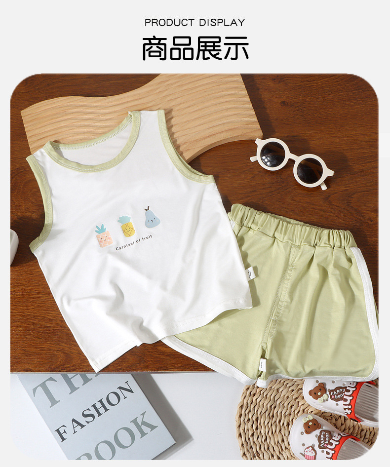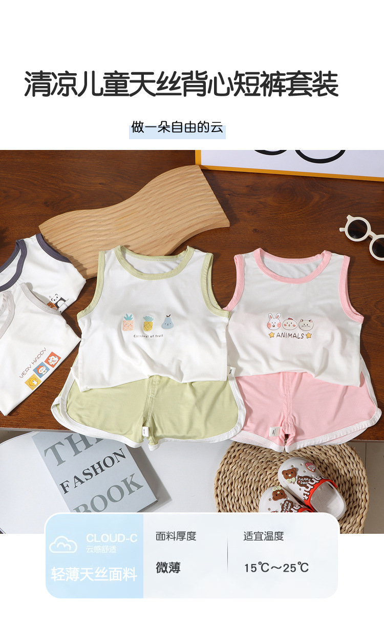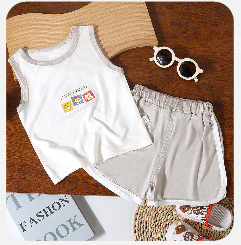 어린이 여름 조끼 2종 세트 남아 여아 민소매 조끼 A급 유아용 홈웨어 조끼 유코실크