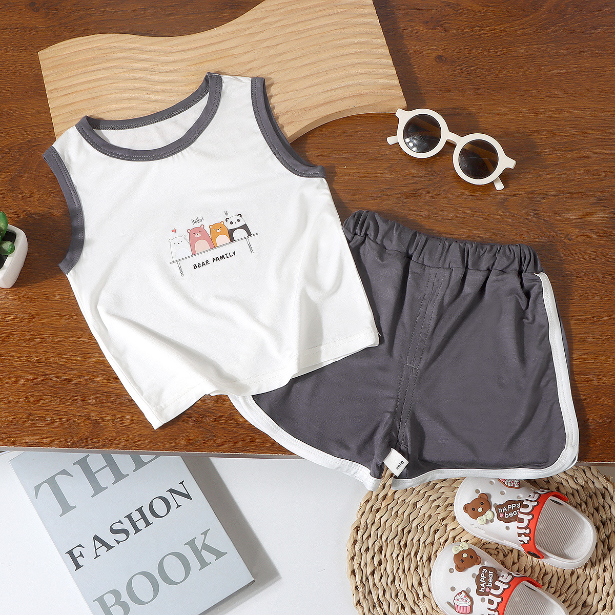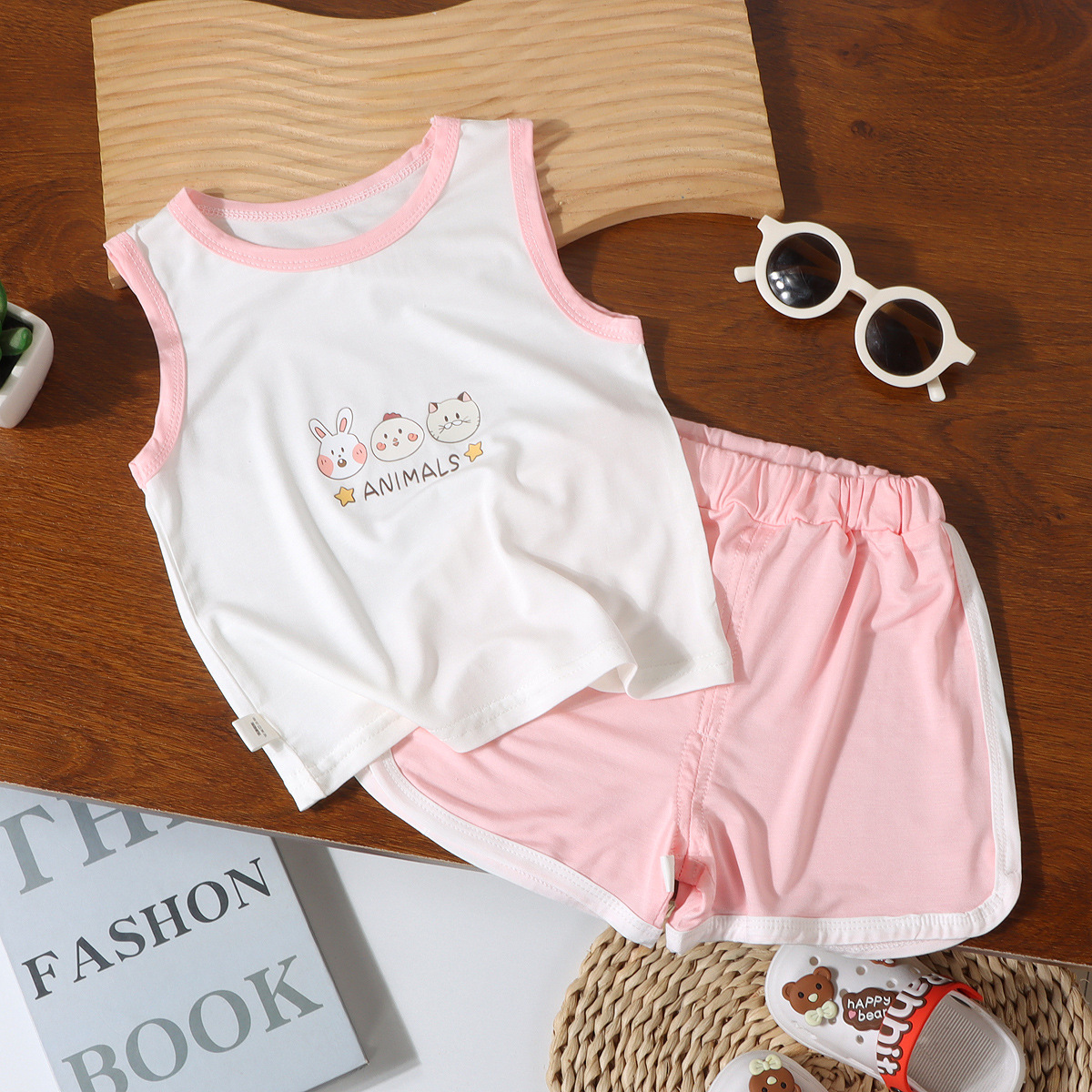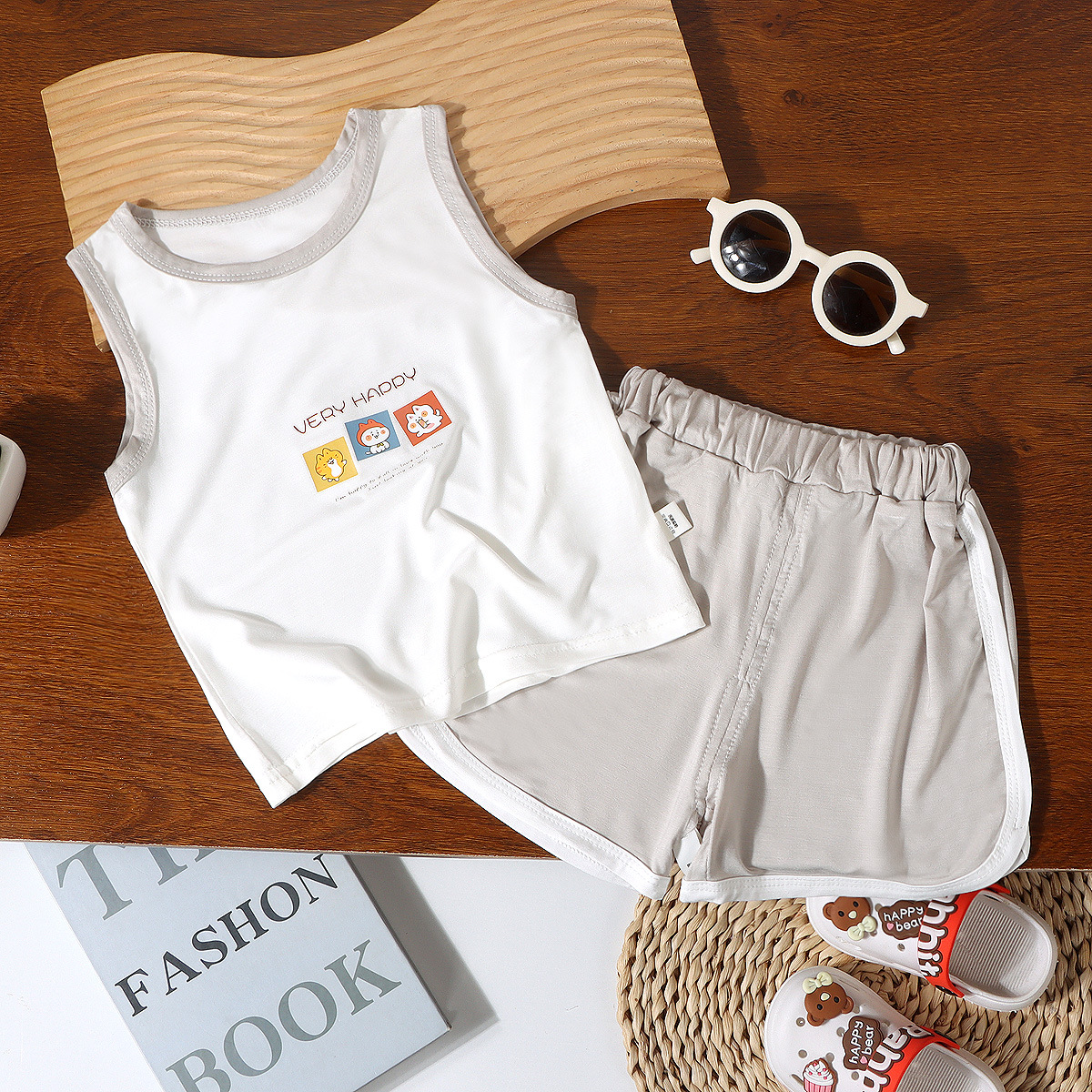 어린이 여름 조끼 2종 세트 남아 여아 민소매 조끼 A급 유아용 홈웨어 조끼 유코실크