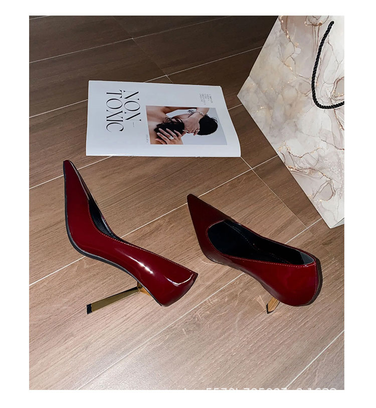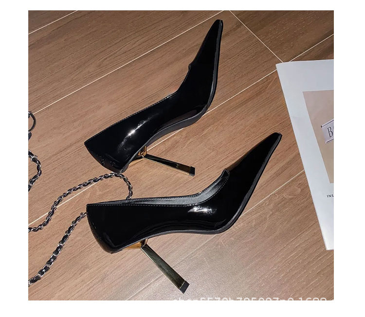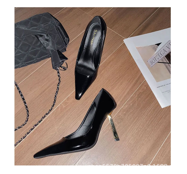 하이 엔드 느낌 작은 골드 바 2025 봄 새로운 특허 가죽 작은 사각형 얇은 뒤꿈치 얕은 컷 남성 기질 하이힐 신발 여성스토어 가기