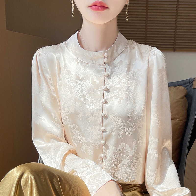 실크 새틴 봄과 여름 수직 칼라 쇼트 올 매치 통근 루즈 탑 카디건 셔츠와 함께 새로운 여성의 우아한 셔츠