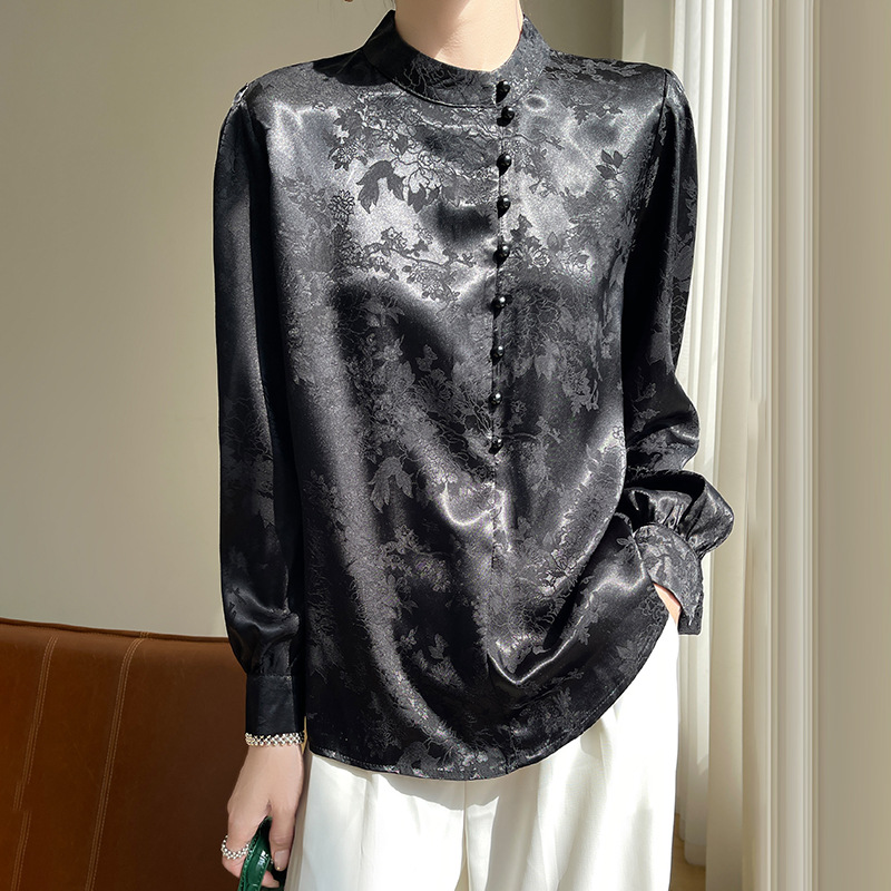 실크 새틴 봄과 여름 수직 칼라 쇼트 올 매치 통근 루즈 탑 카디건 셔츠와 함께 새로운 여성의 우아한 셔츠스토어 가기
