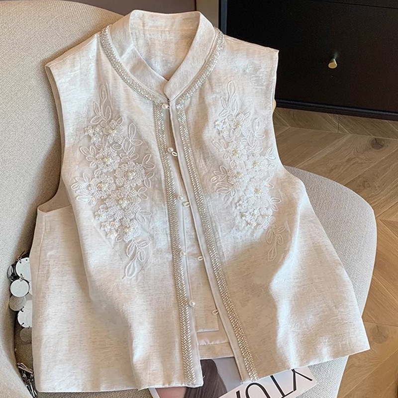 무거운 의무 구슬 자수 새로운 중국 조끼 여성 2025 년 여름 새로운 국가 스타일 하이 엔드 우아한 세련된 칼라 조끼