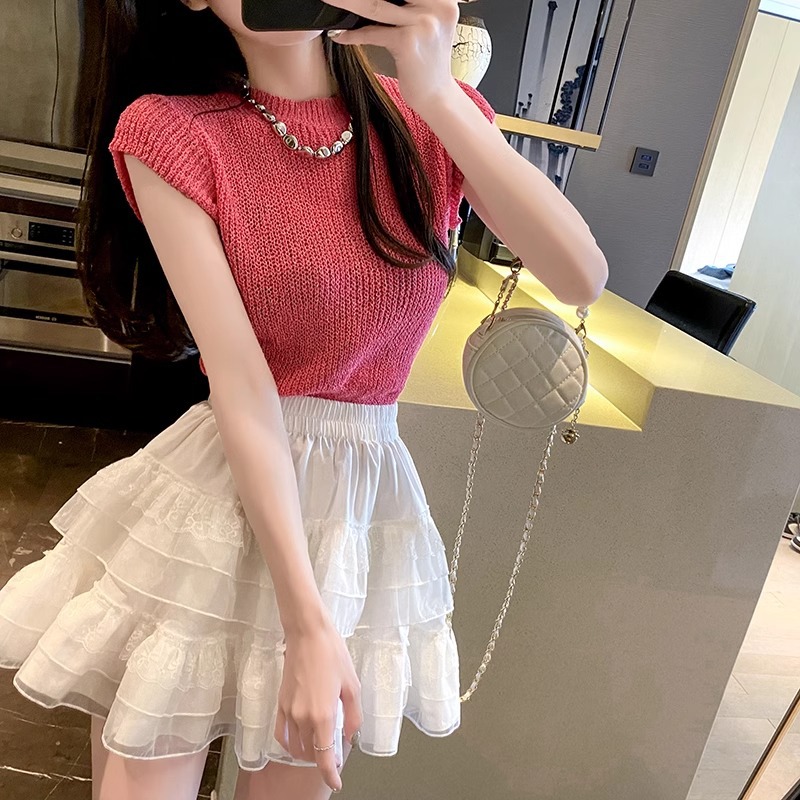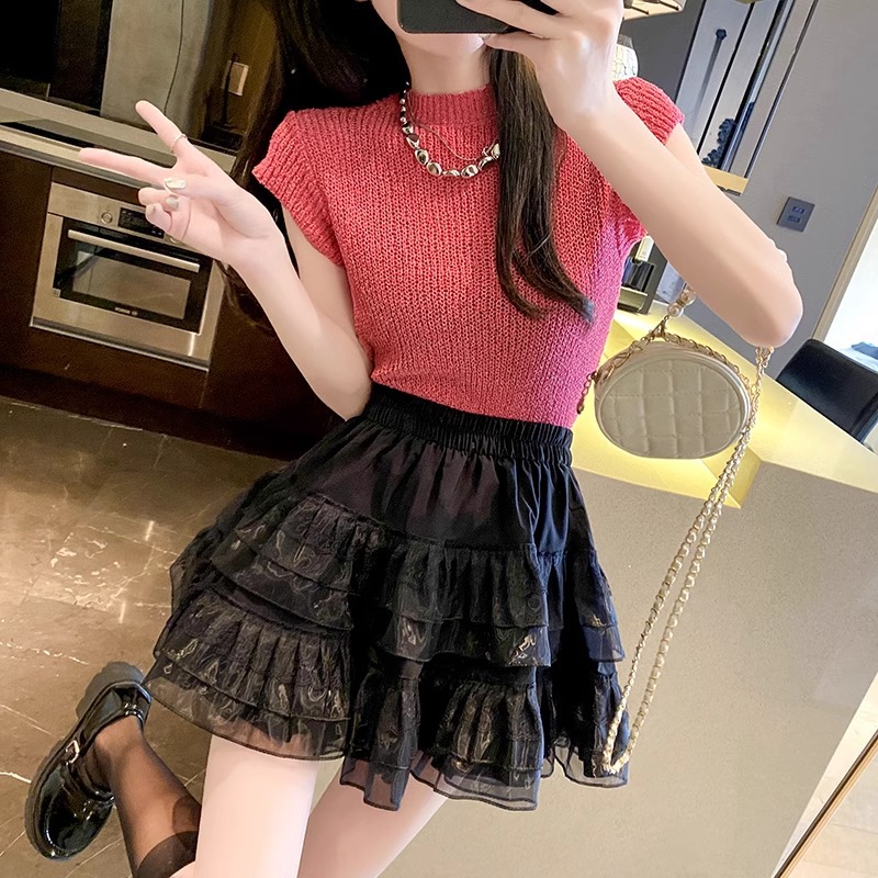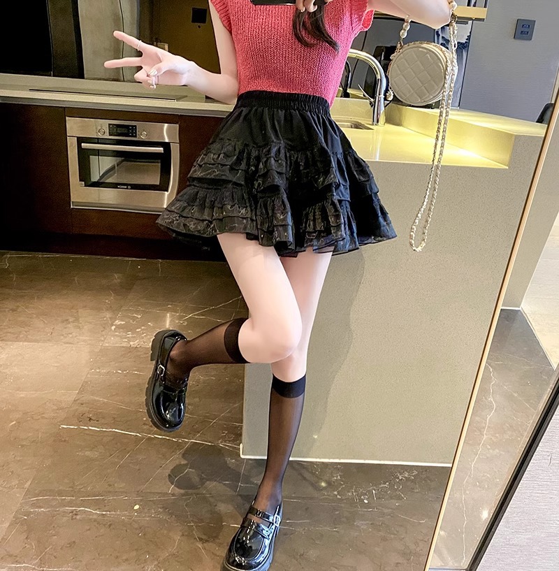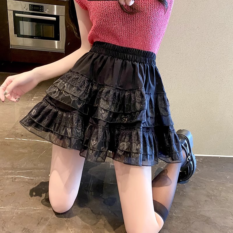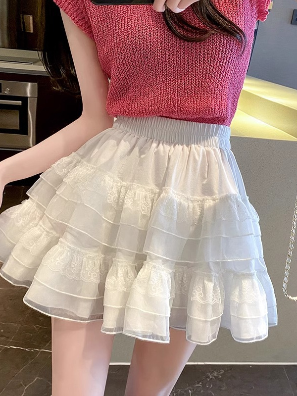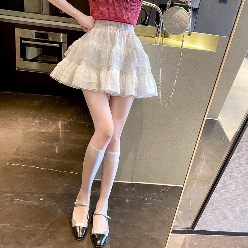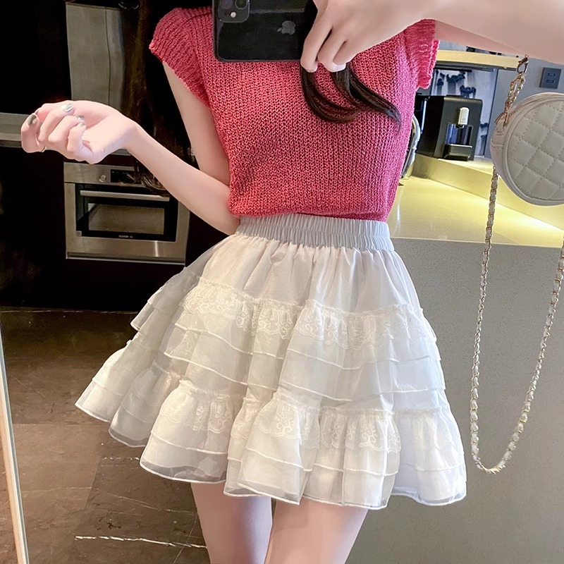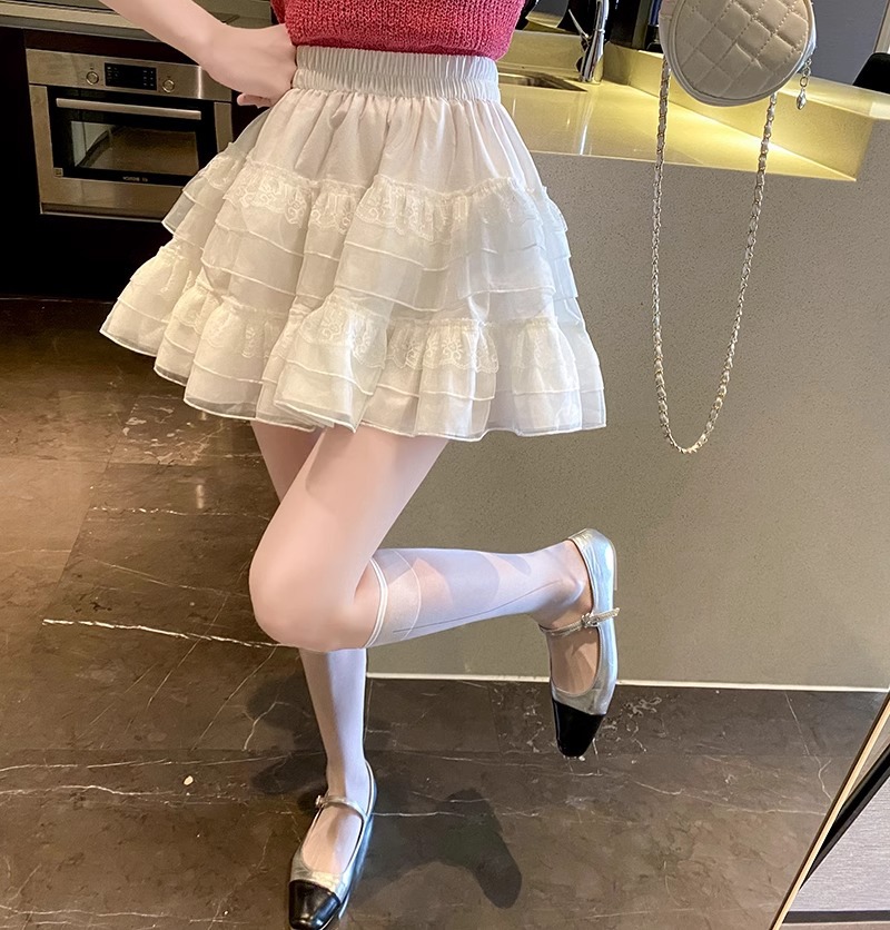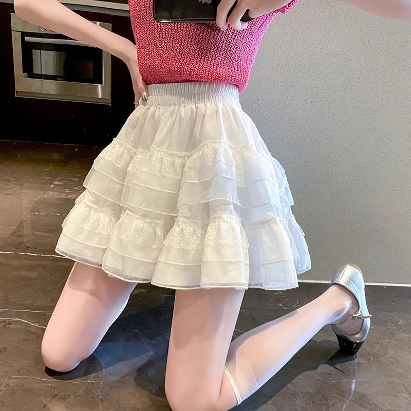 슈퍼 요정 레이스 케이크 스커트 여성 봄, 여름 흰색 요정 거즈 스커트 노출 방지 하이 웨이스트 a 라인 퍼프 스커트