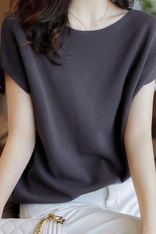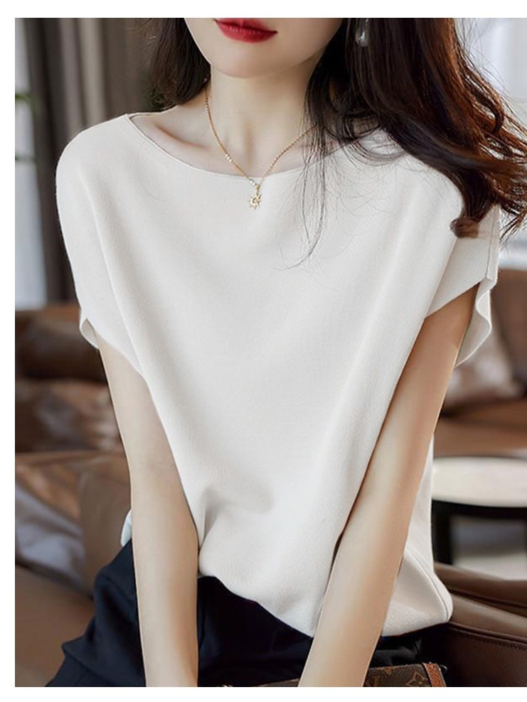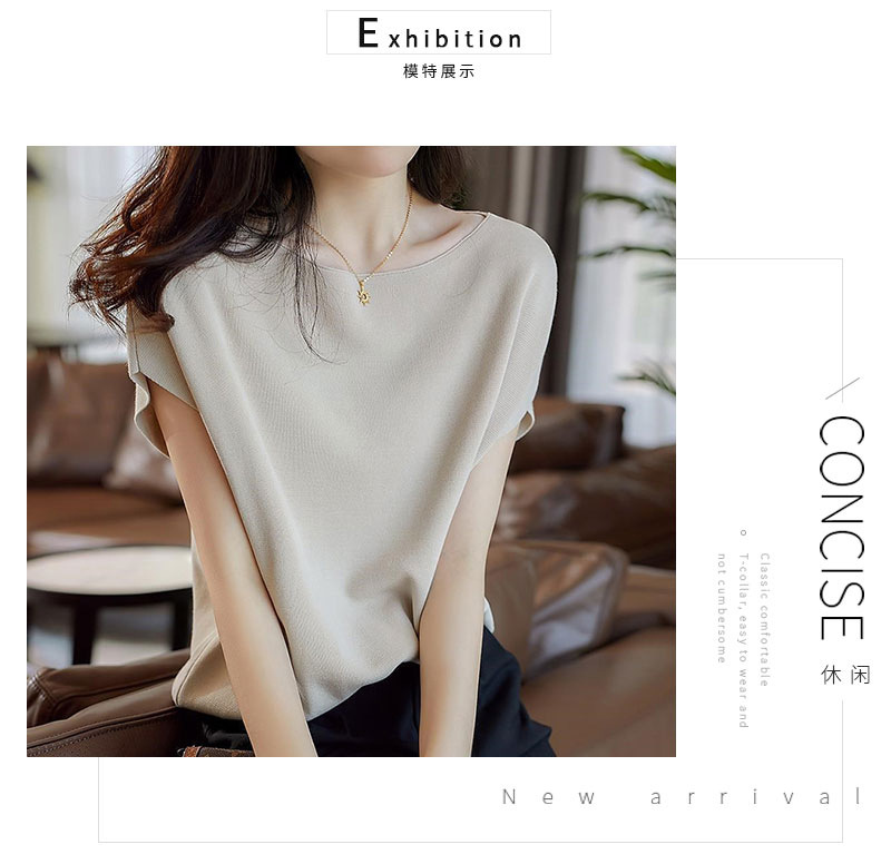 아이스 실크 스웨터 반팔 티셔츠 여성용 얇은 2024 새로운 여름 라운드 넥 느슨한 박쥐 소매 웨스턴 스타일 탑