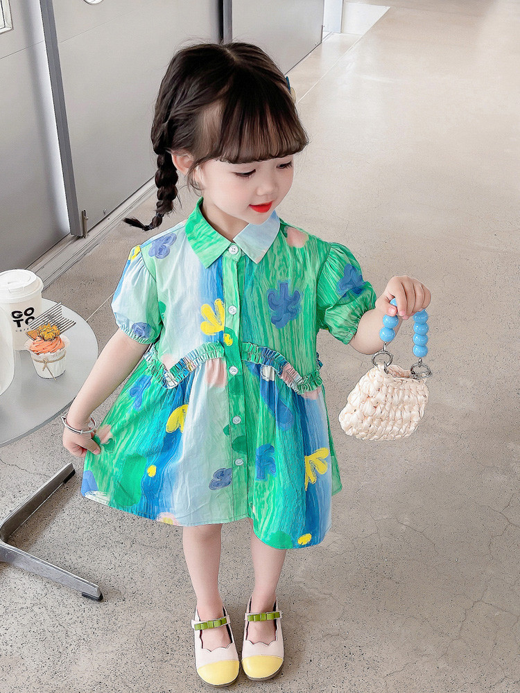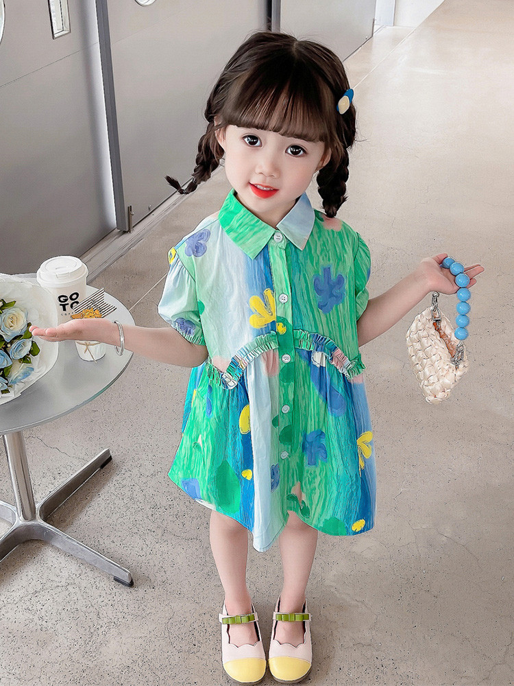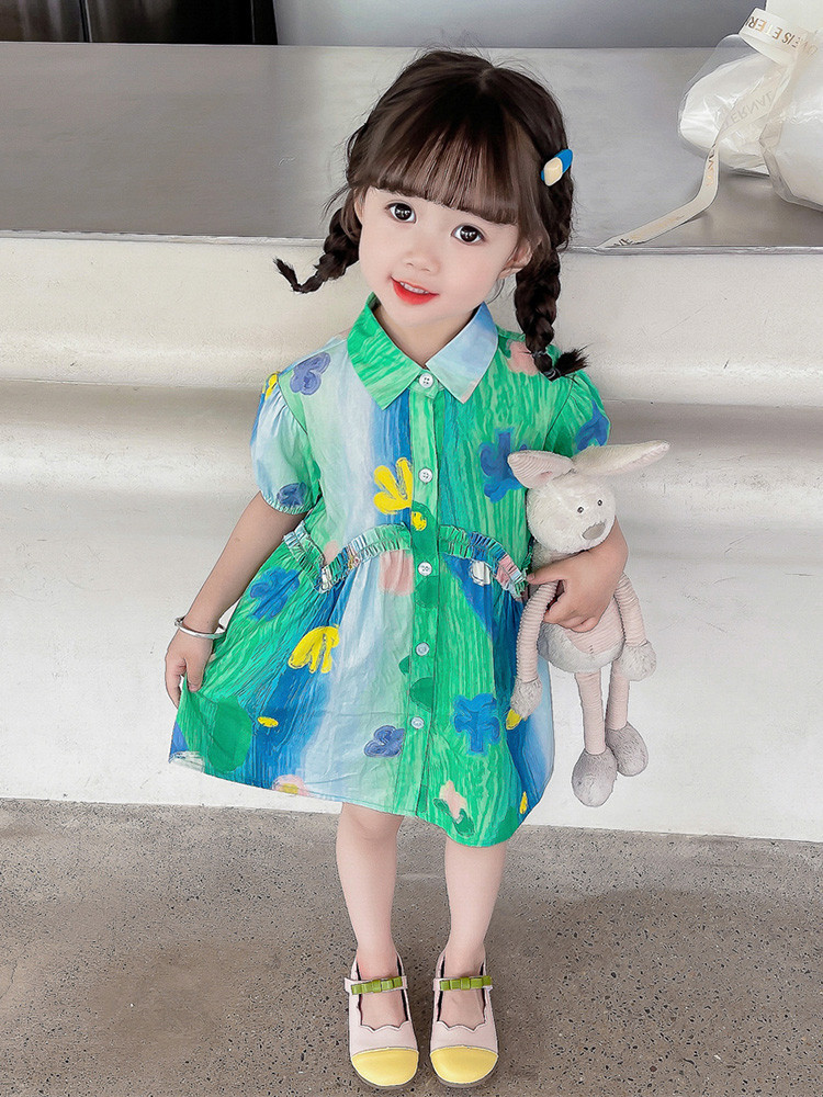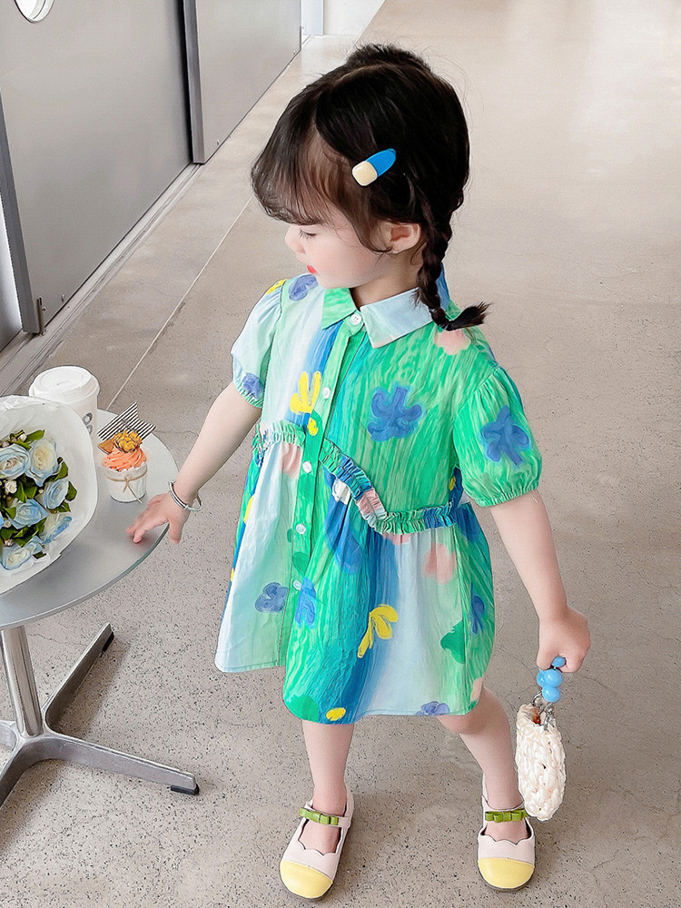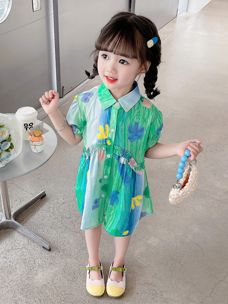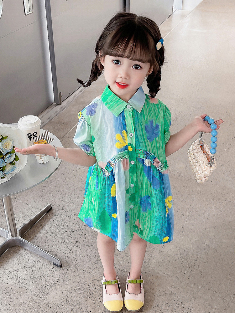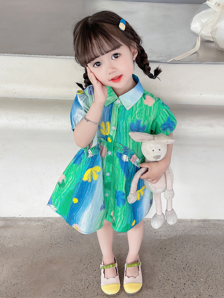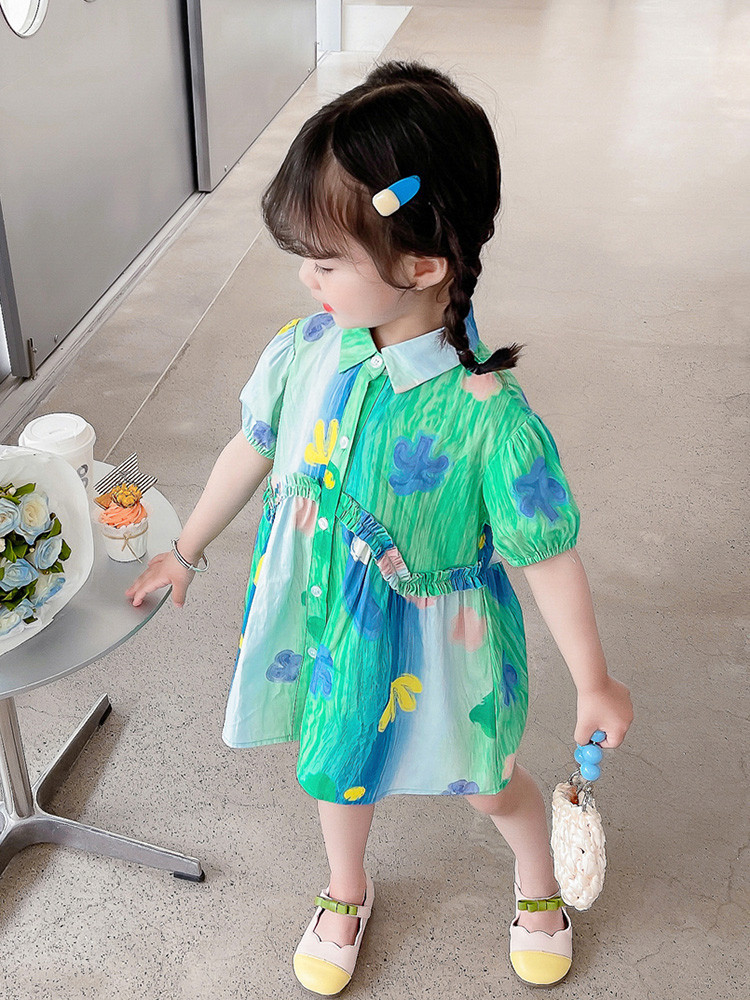 소녀 유화 스타일 원피스 여름 원피스 2025 새로운 어린이 아기 패션 서양식 신선한 셔츠 원피스 여름스토어 가기