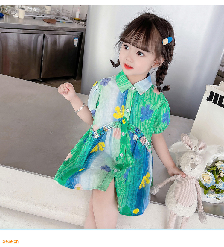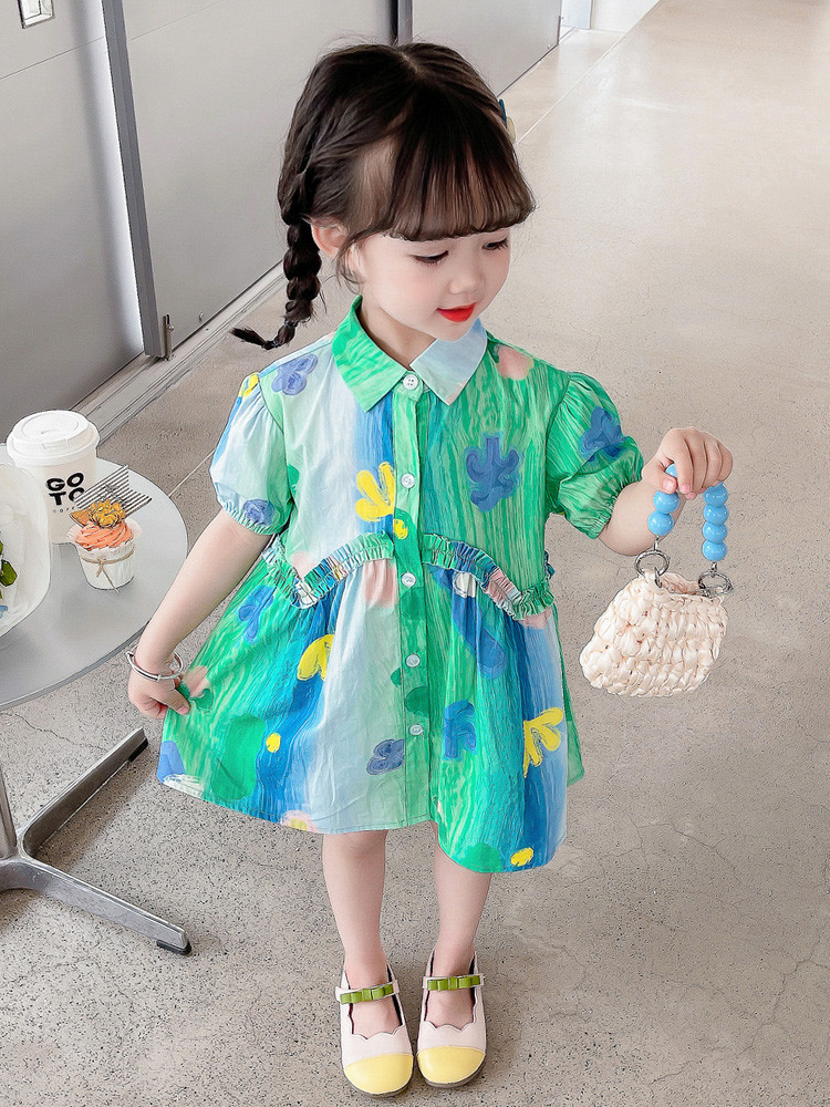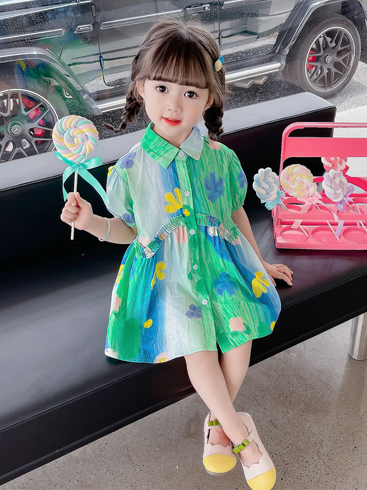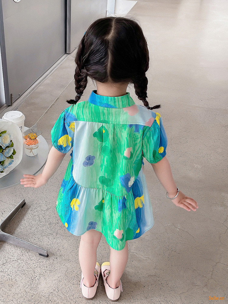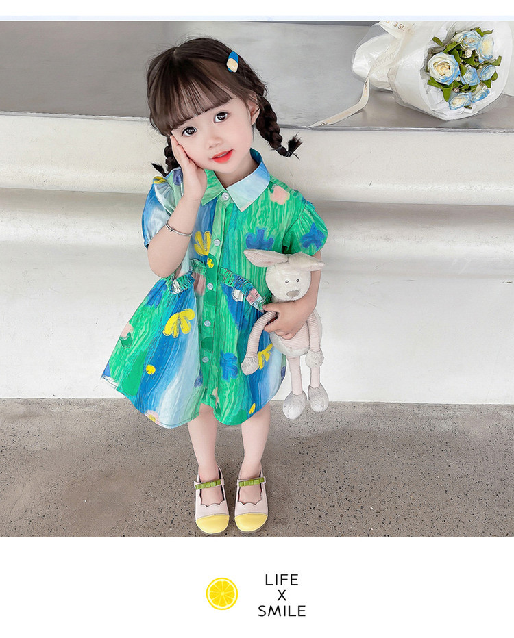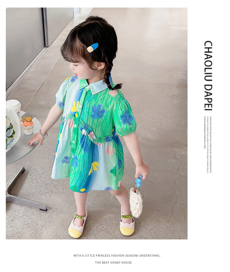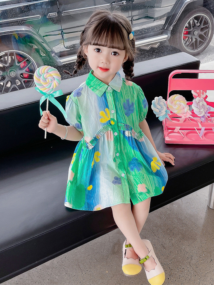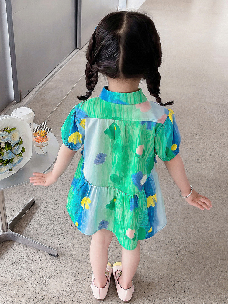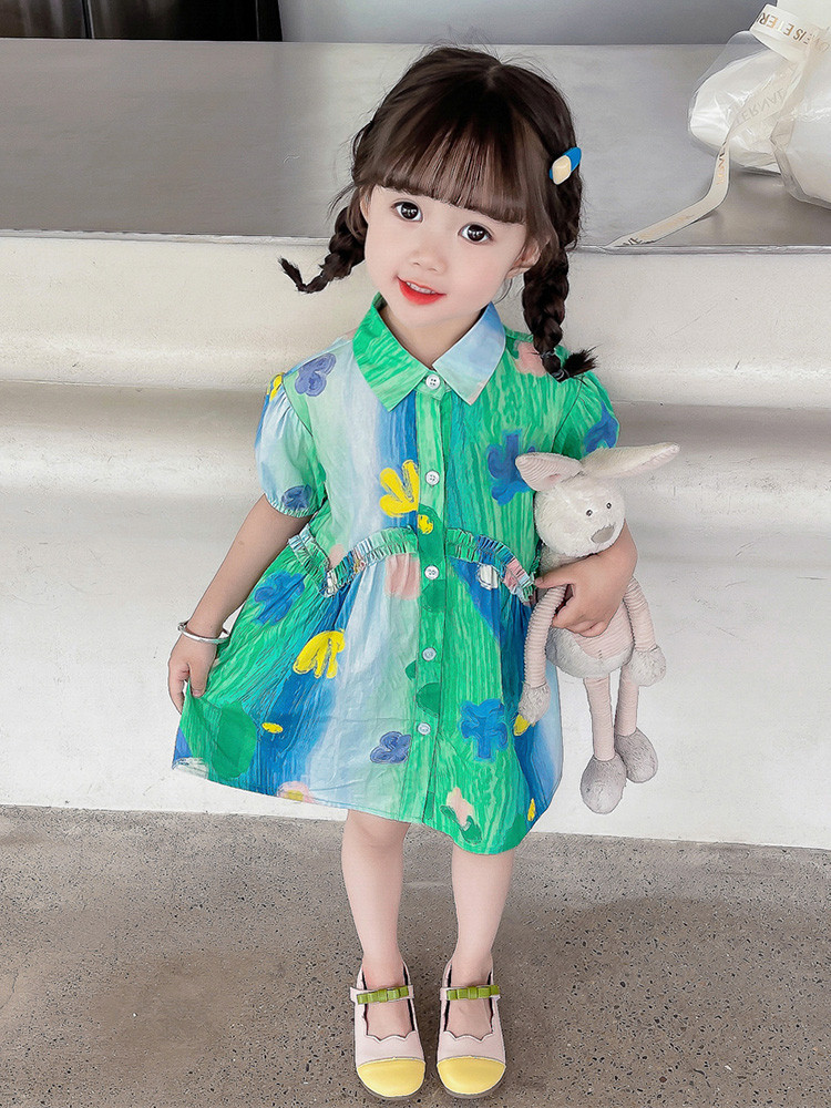 소녀 유화 스타일 원피스 여름 원피스 2025 새로운 어린이 아기 패션 서양식 신선한 셔츠 원피스 여름스토어 가기