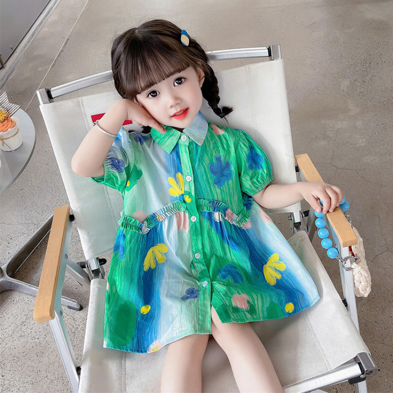 소녀 유화 스타일 원피스 여름 원피스 2025 새로운 어린이 아기 패션 서양식 신선한 셔츠 원피스 여름