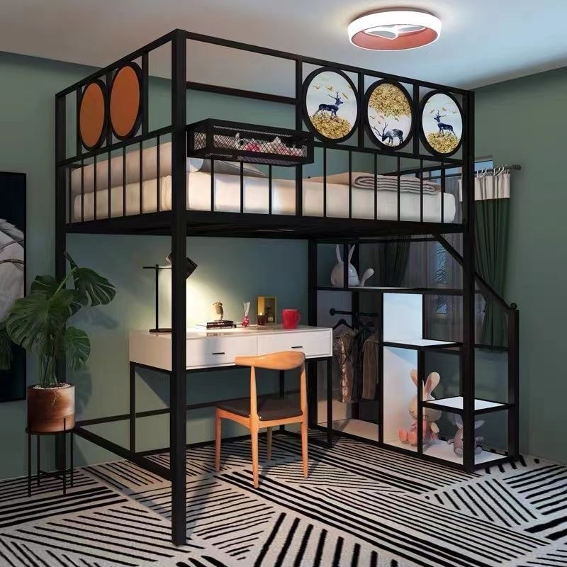 파빌리온 침대 현대 간단한 작은 아파트 철 높고 낮은 침대 다기능 공간 절약 높은 침대 시트 상부 철 침대